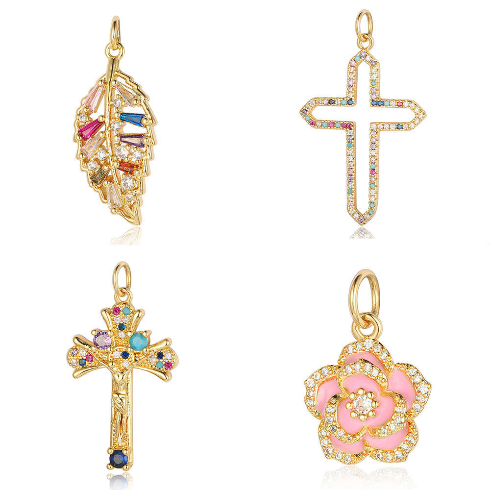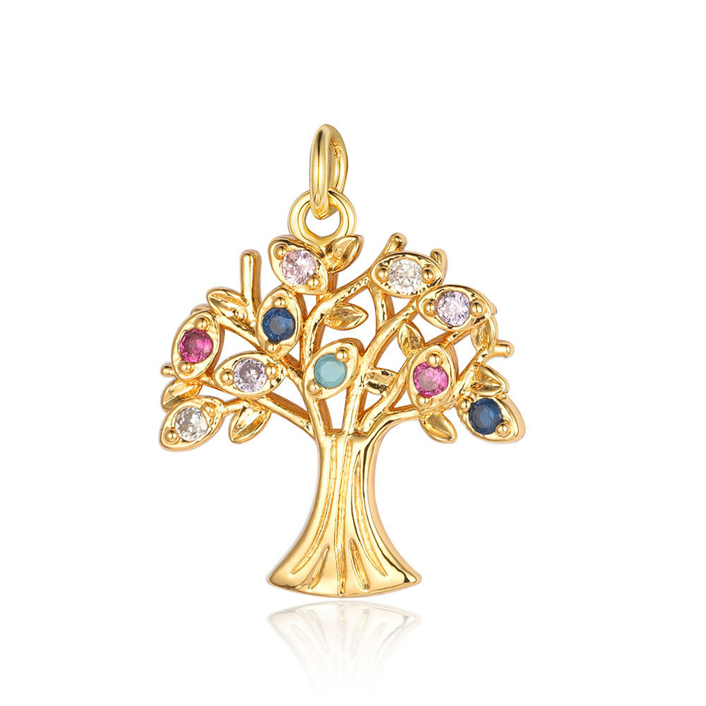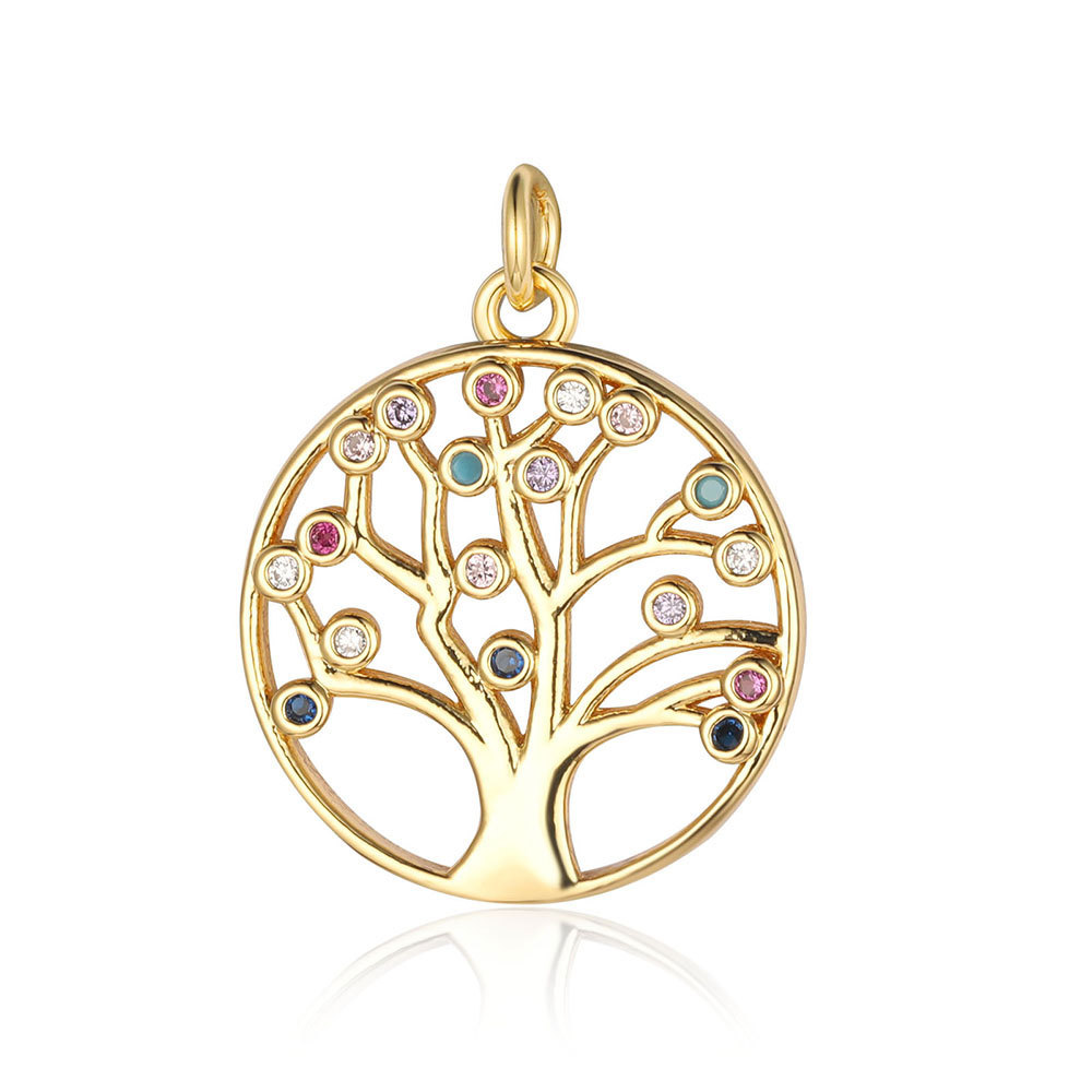 Cross Copper Zircon Necklace Pendant Tree of Life