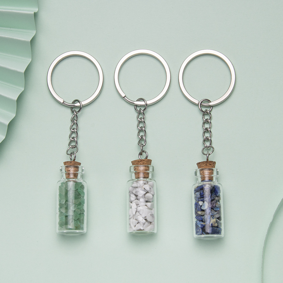 Crushed Agate Wishing Bottle Stainless Steel Keychain Pendant