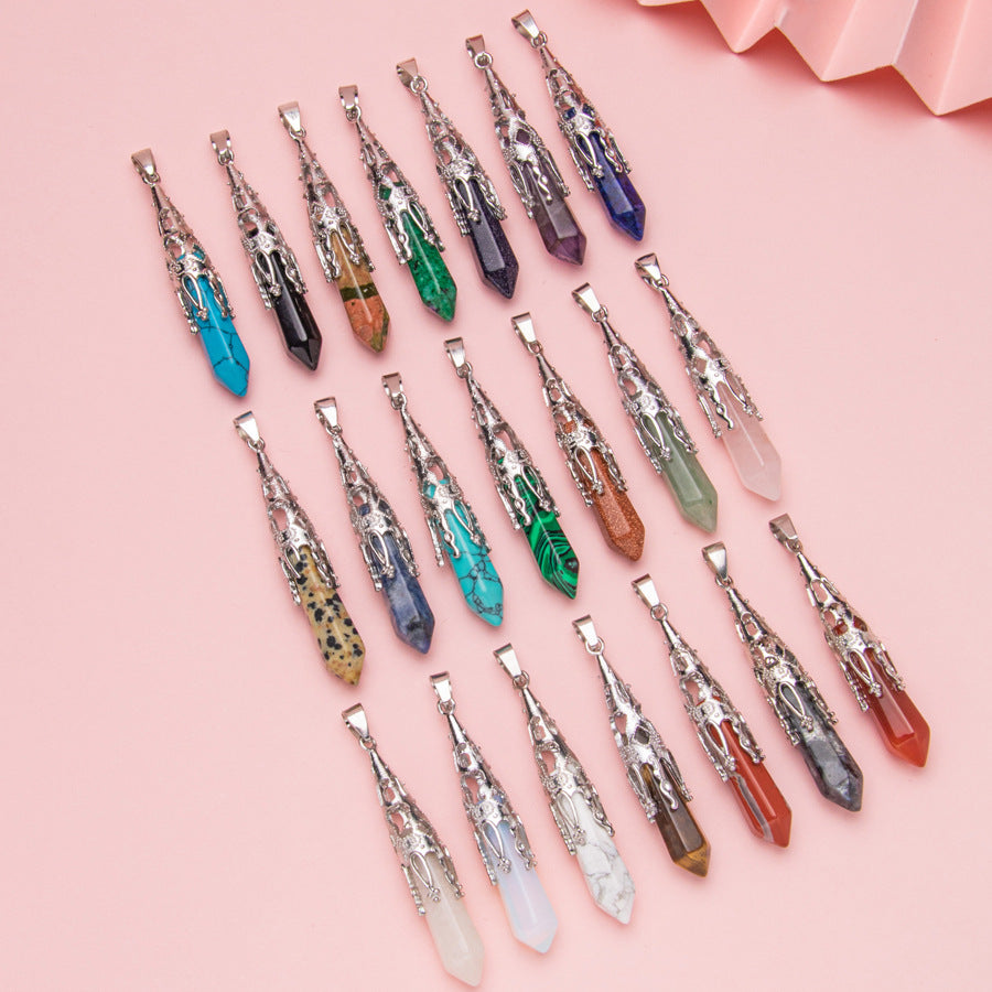 Crystal Agate Hexagonal Pyramid Pendulum Pendant