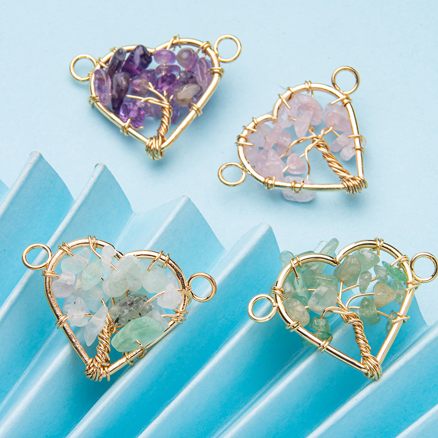 Crystal double-headed love wire-wrapped gravel tree of life pendant