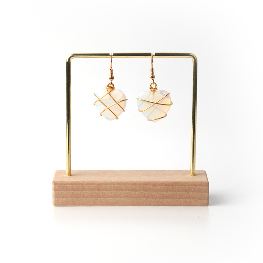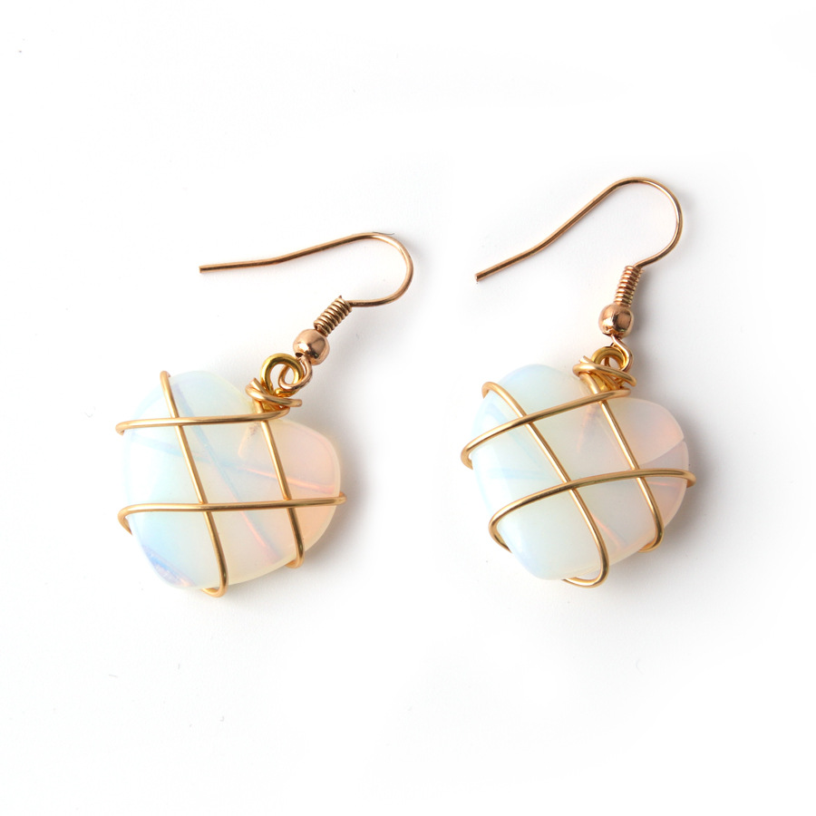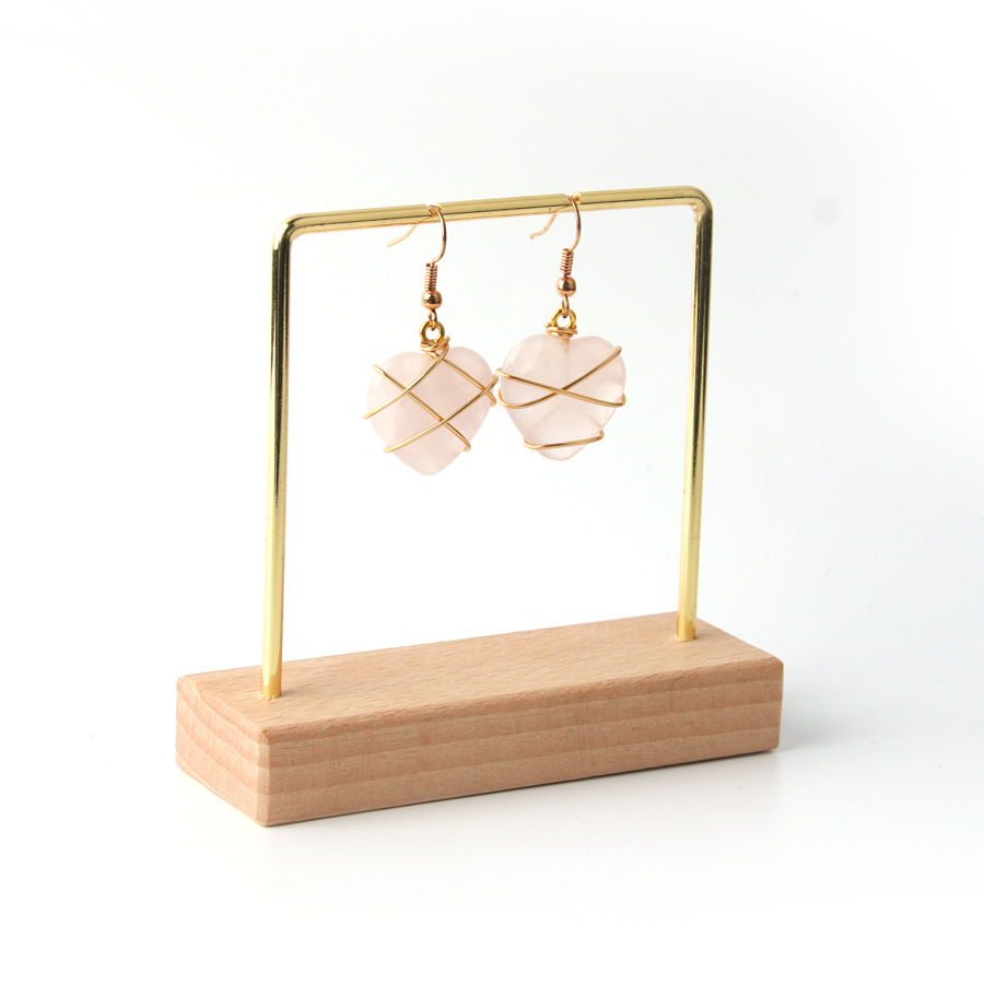 Crystal Heart Gold Wrapped Rose Quartz Earrings
