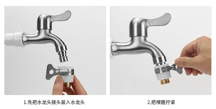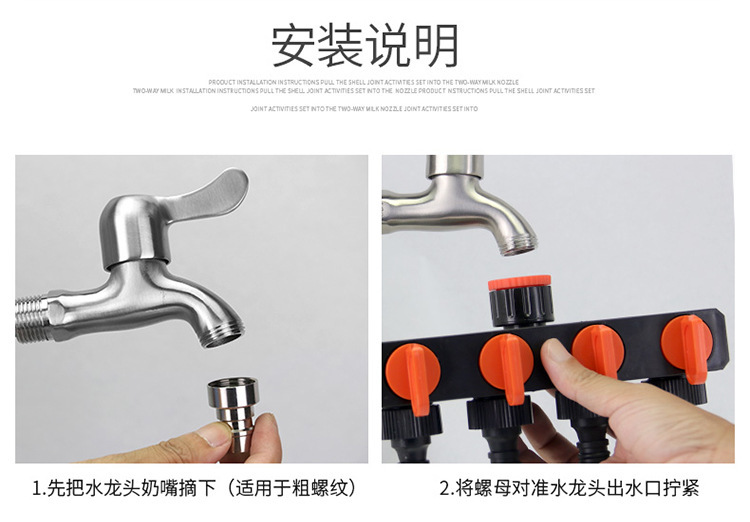 One end of the quick and easy interface is directly connected to the water pipe, and it is installed according to the installation method on the picture.