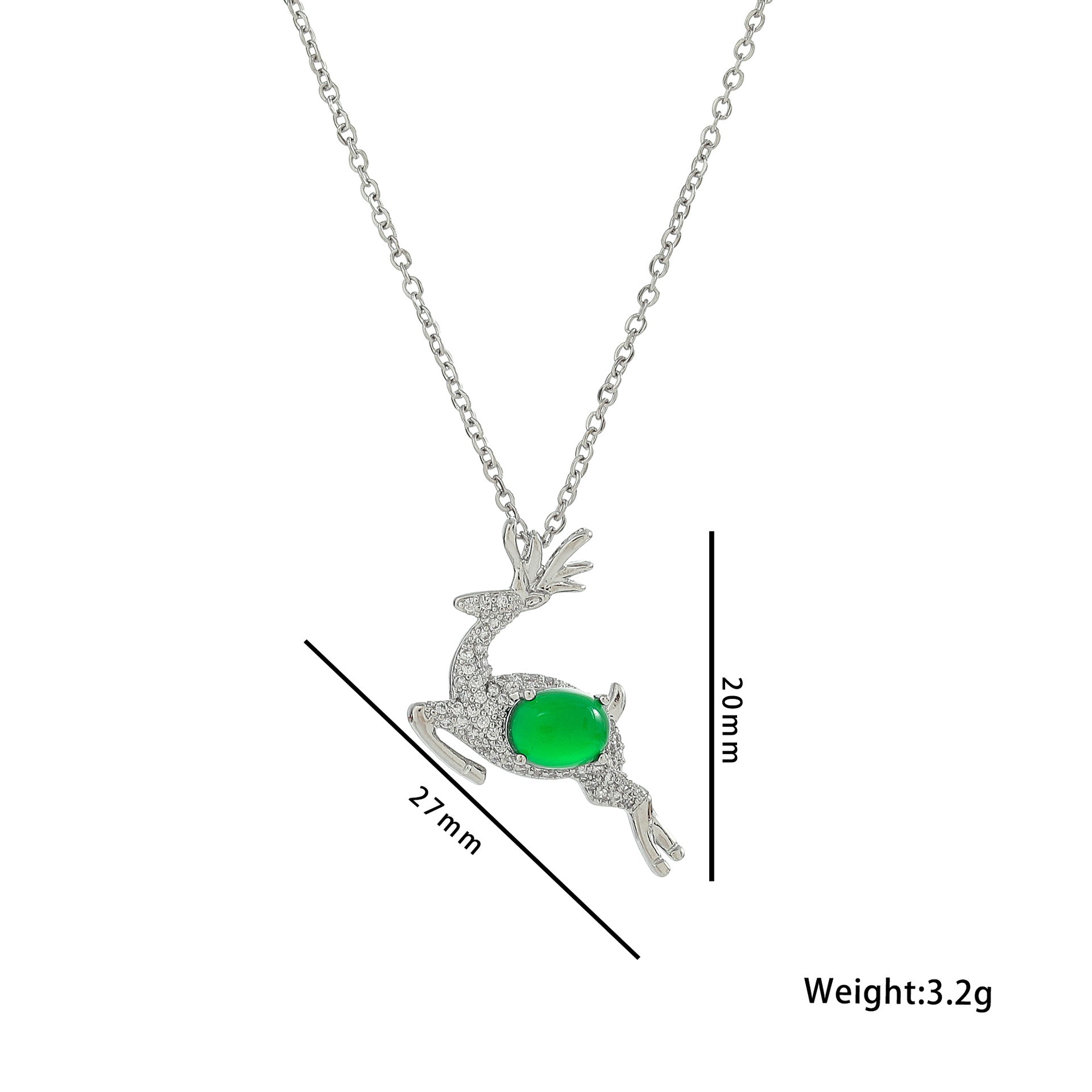 Deer Design Christmas Style Green Deer Pendant Necklace