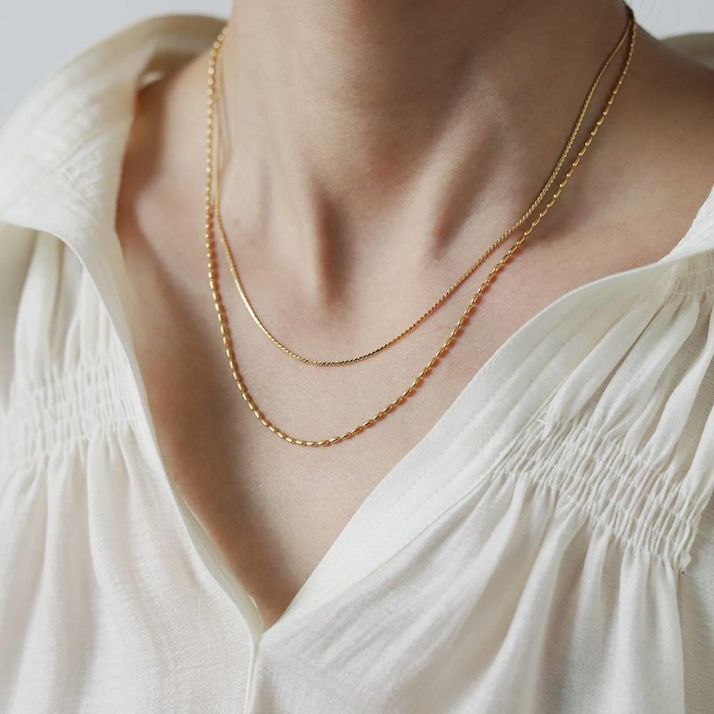 SKU:YY-1080-Rice Bead Double Necklace - Gold
