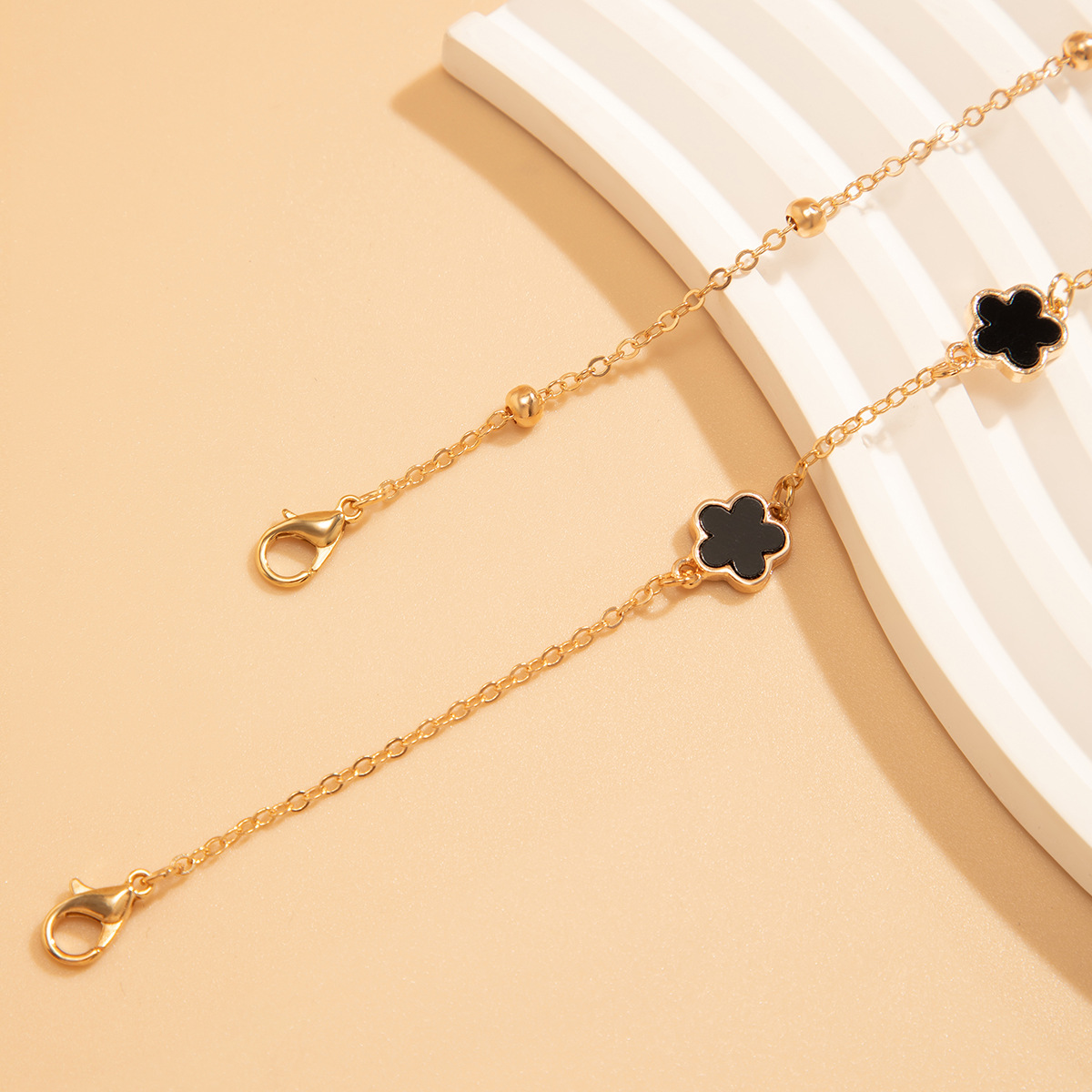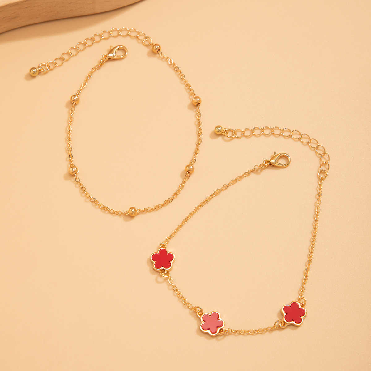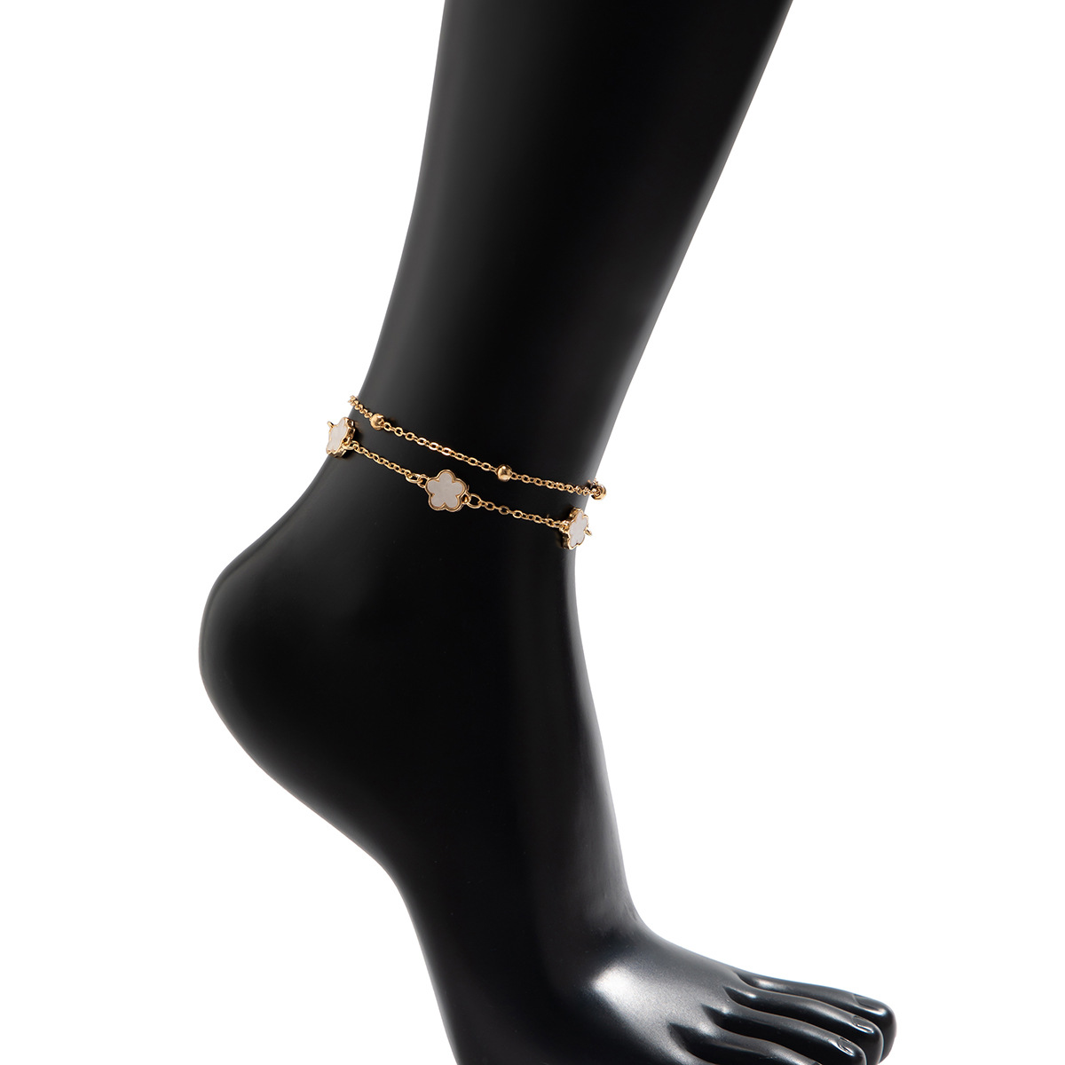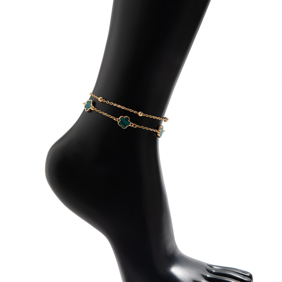 Double lucky five-petaled clover anklet