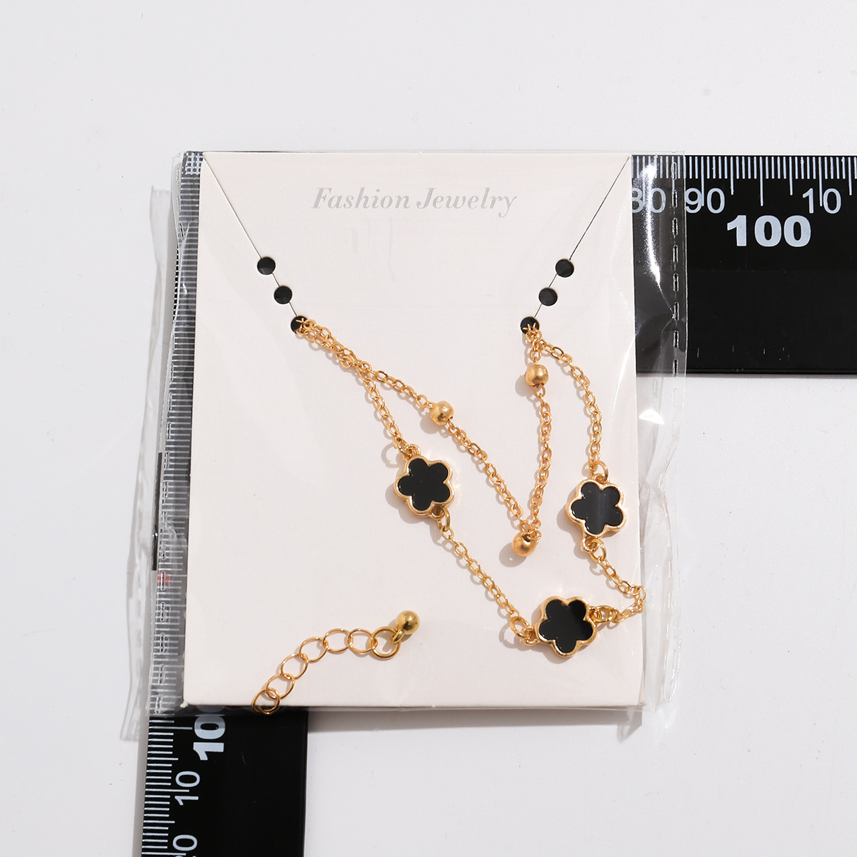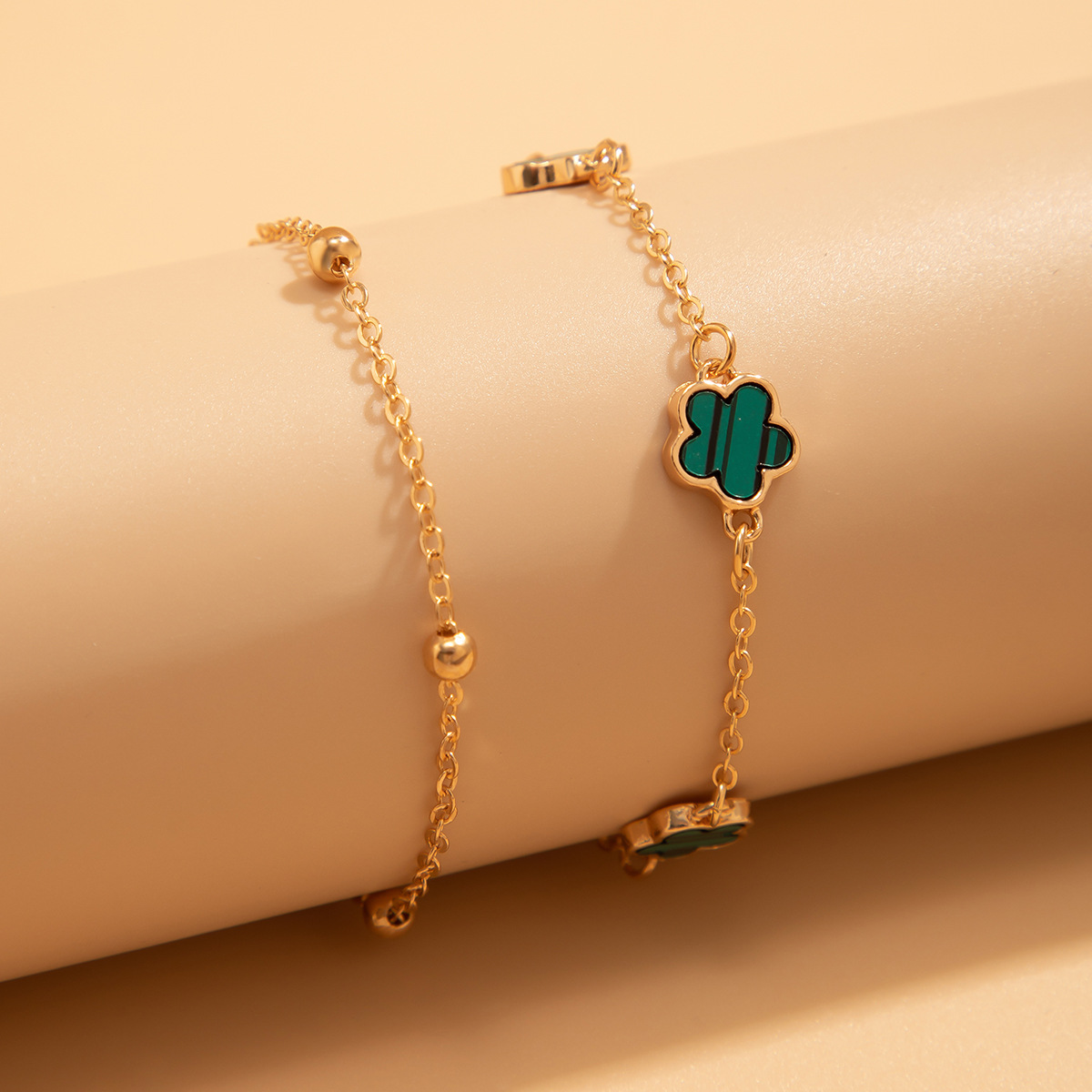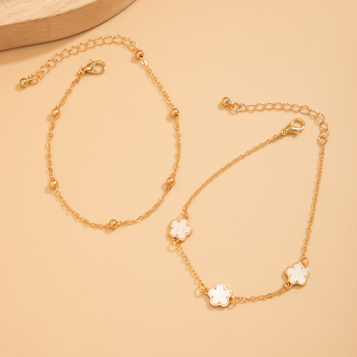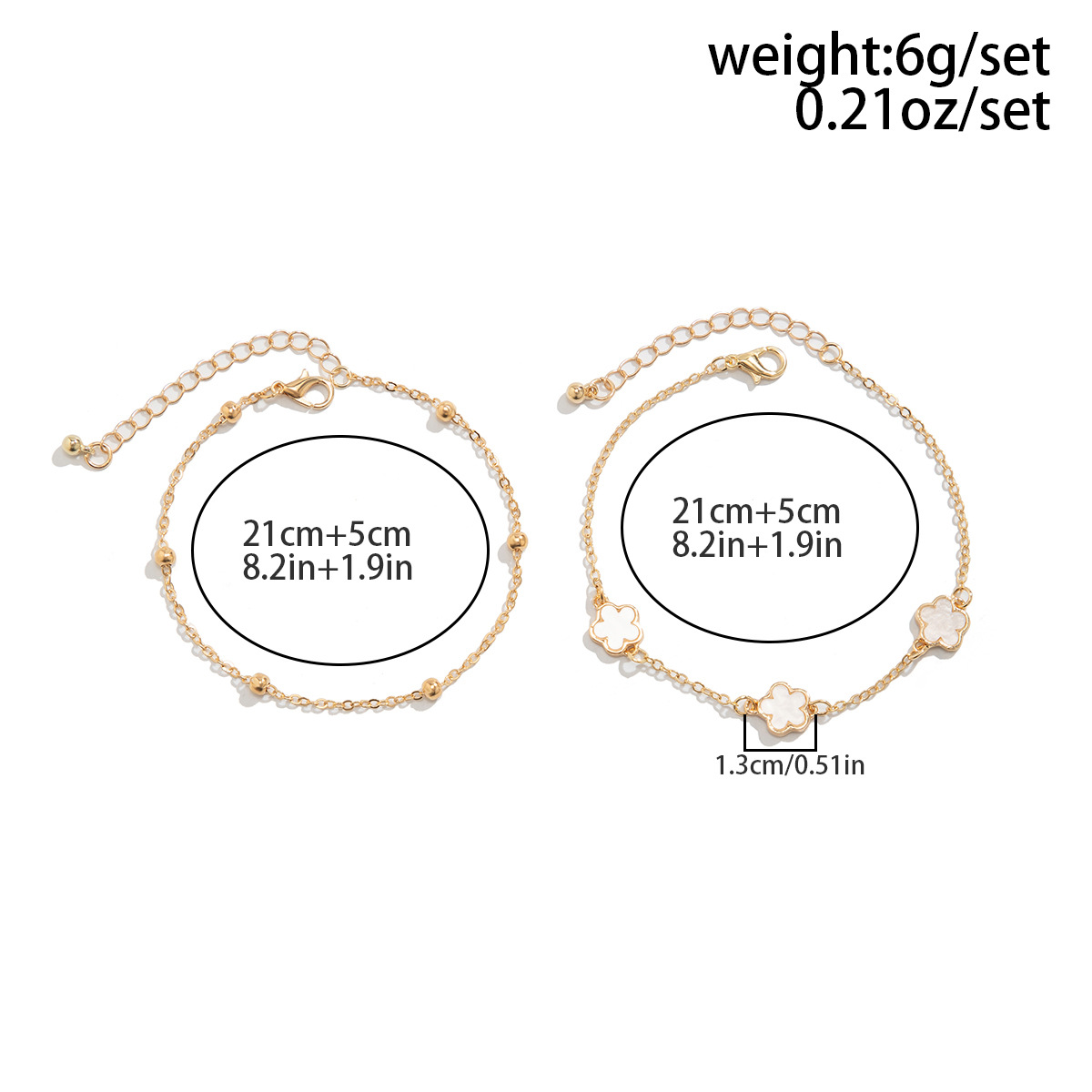 Double lucky five-petaled clover anklet