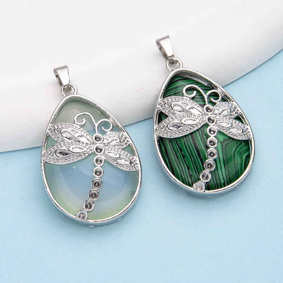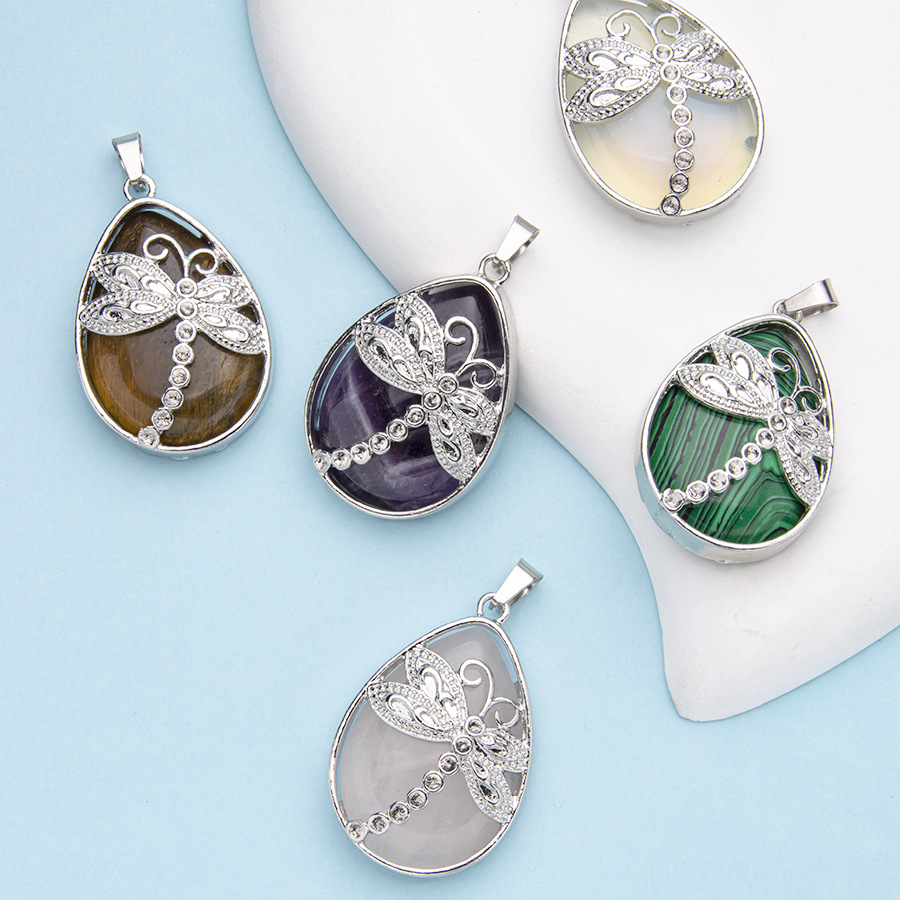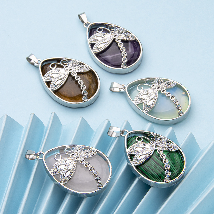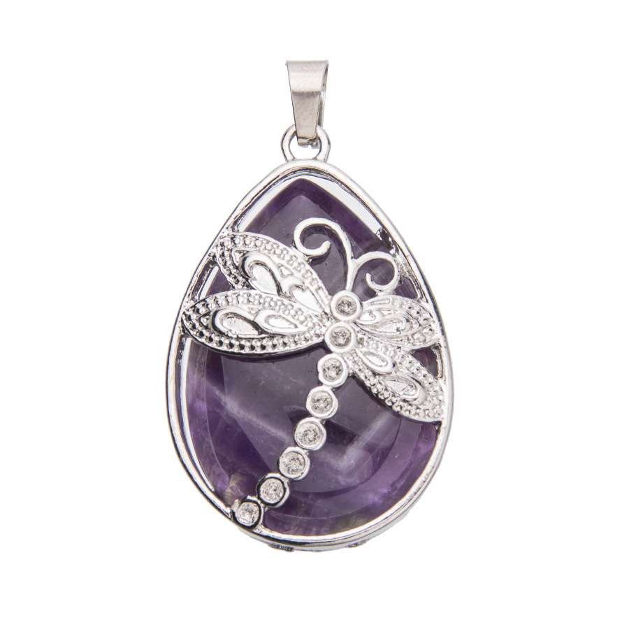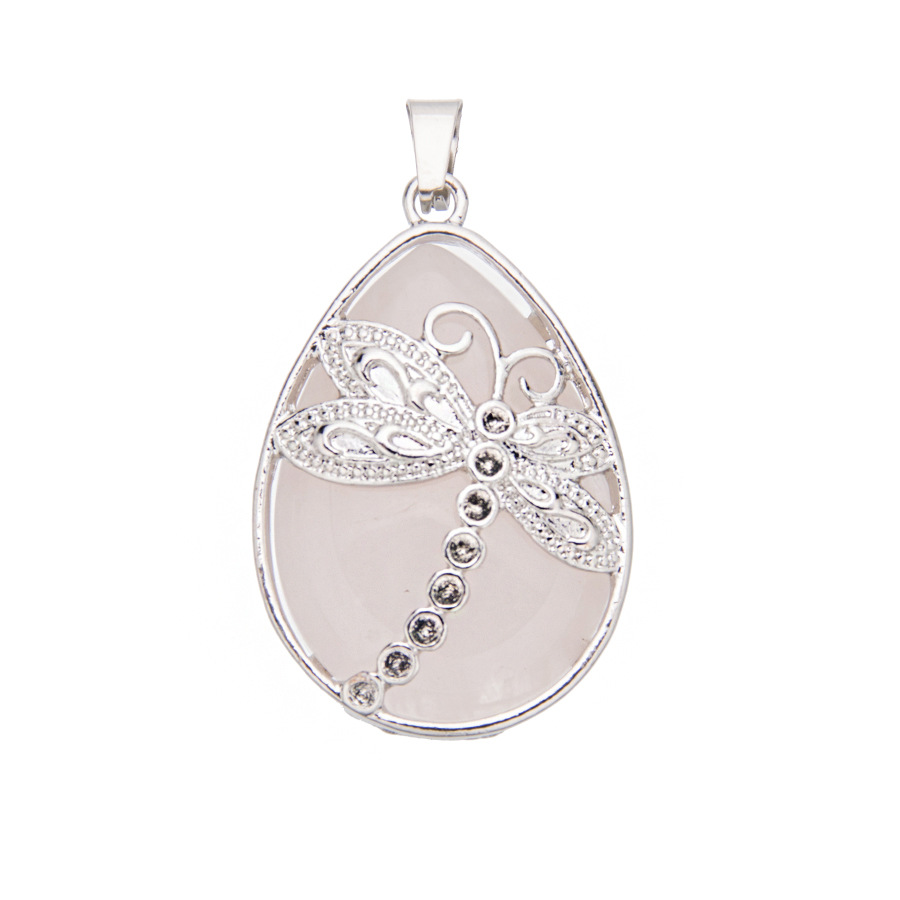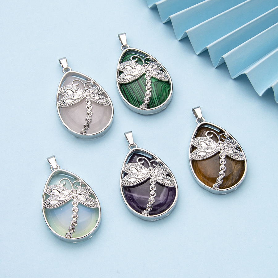 Drop-Shaped Crystal-Trimmed Dragonfly Pendant