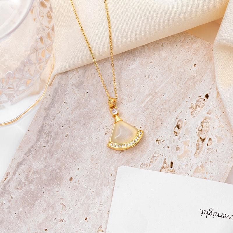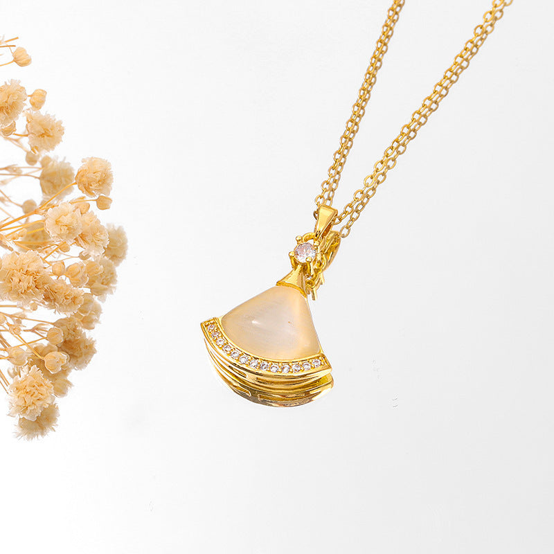 SKU:YY-0111-Opal Skirt Necklace - Gold