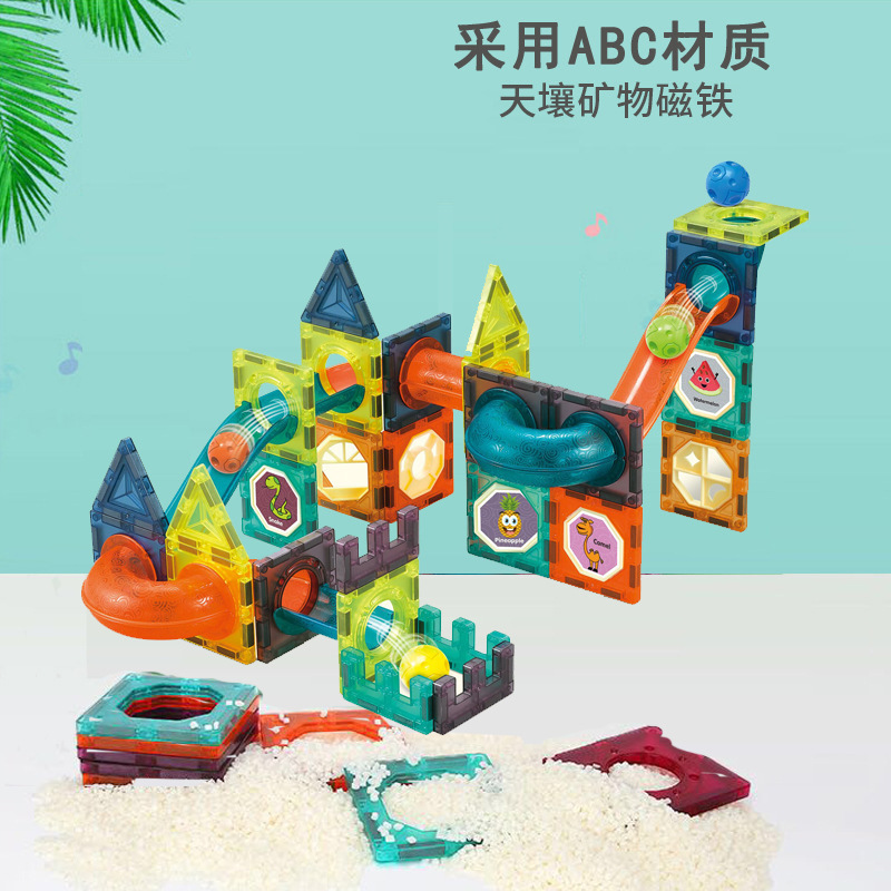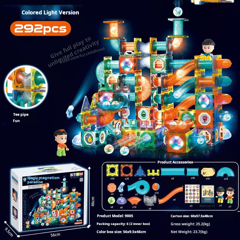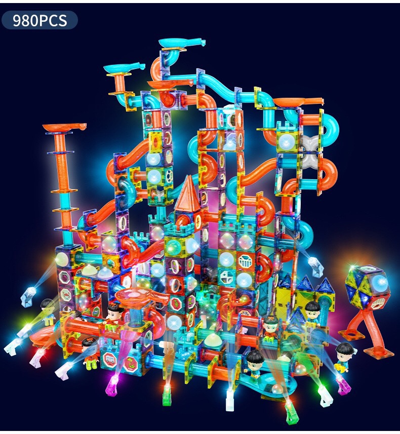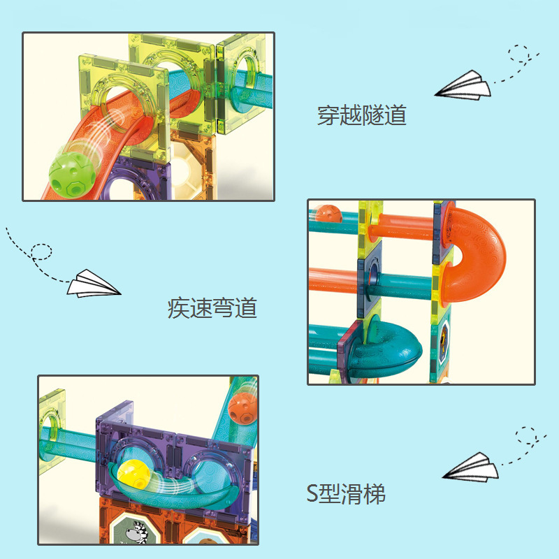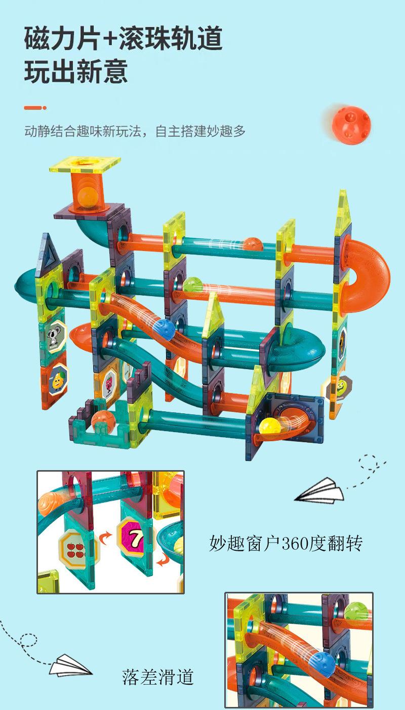 Educational Magnetic Tiles Toy, Colorful Window Pipes Ball Track Building Blocks