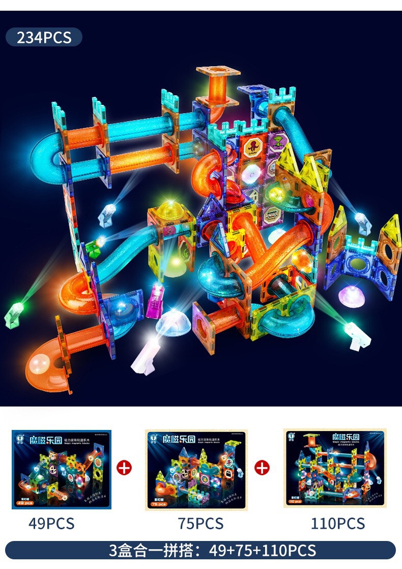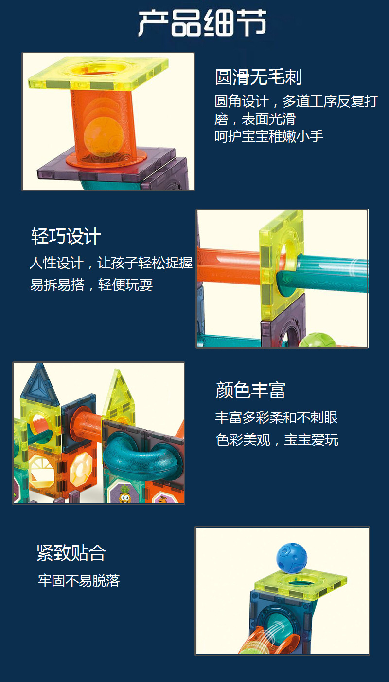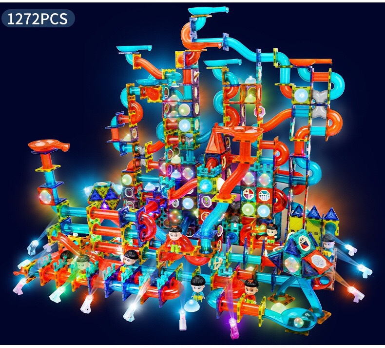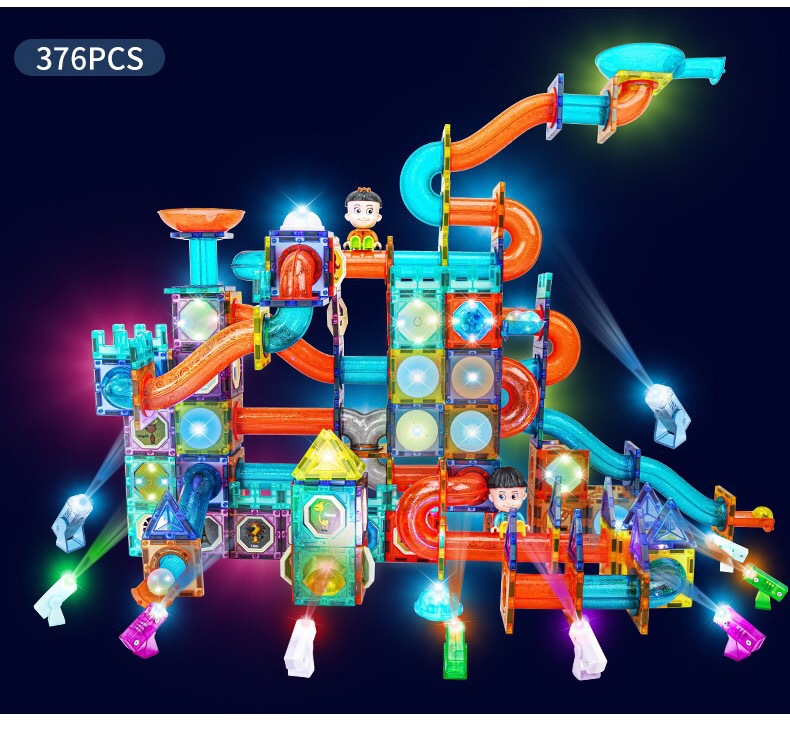Educational Magnetic Tiles Toy, Colorful Window Pipes Ball Track Building Blocks