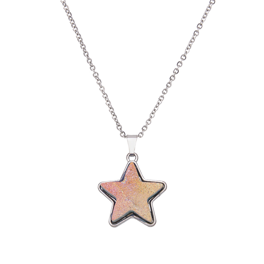Electroplated Crystal Teeth Colorful Five-pointed Star Stainless Steel Pendant Necklace
