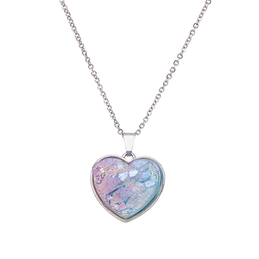 Electroplated dyed crystal stainless steel heart-shaped necklace