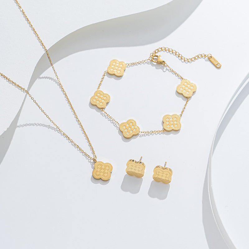 Elegant Clover Bracelet Set Korean Style 18K Plated Jewelry