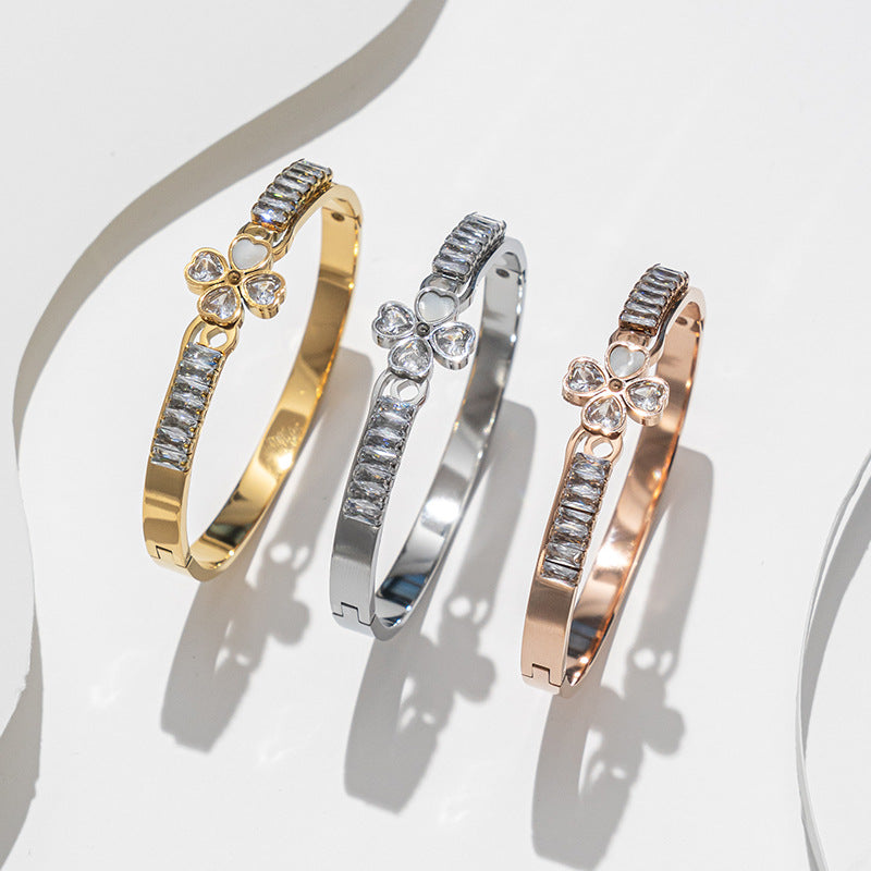 Elegant Clover Titanium Steel Zircon Bracelet for Women