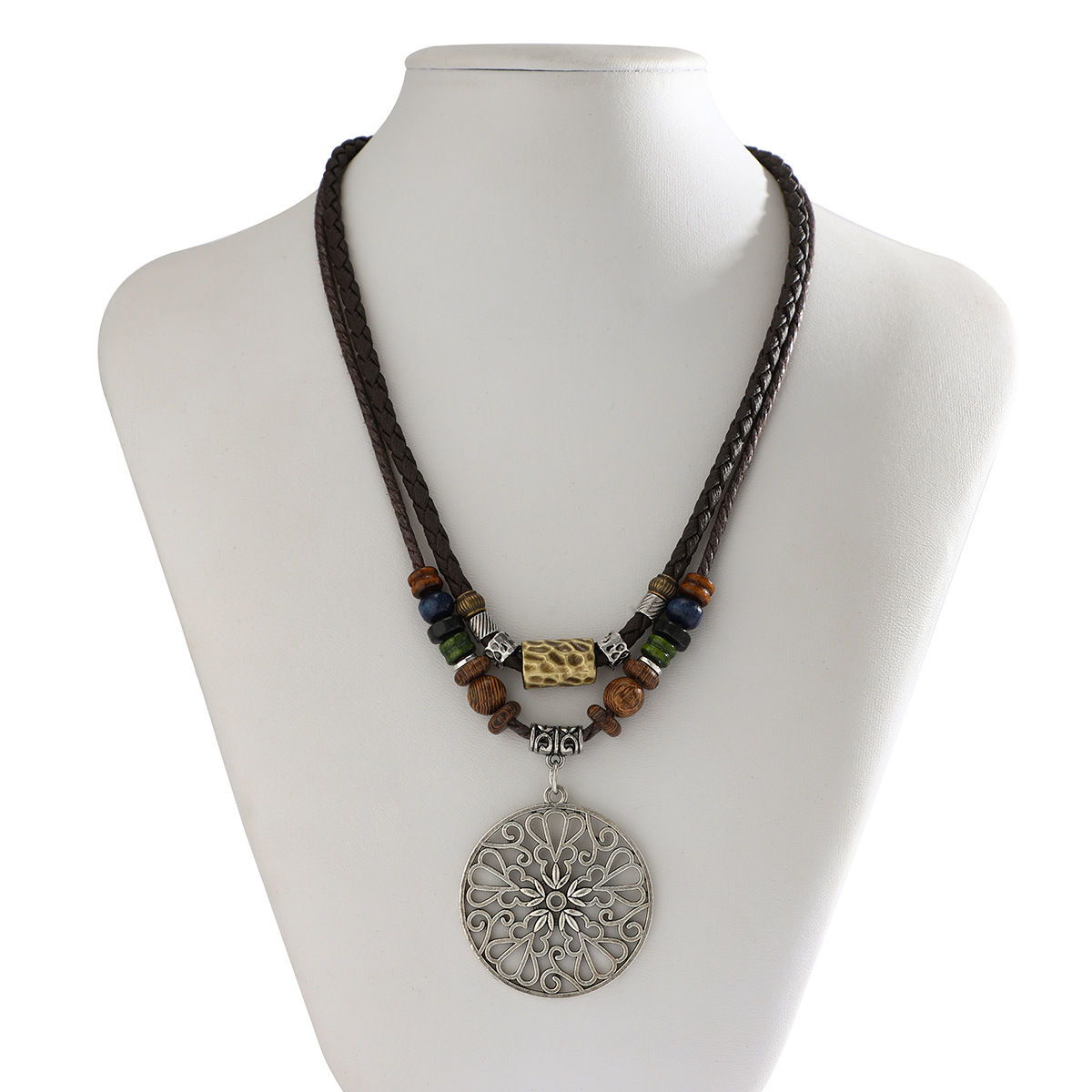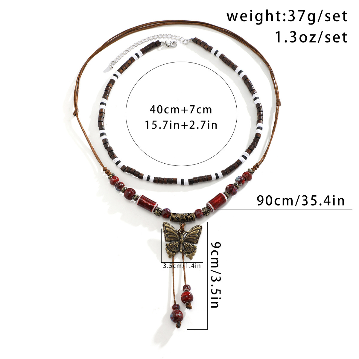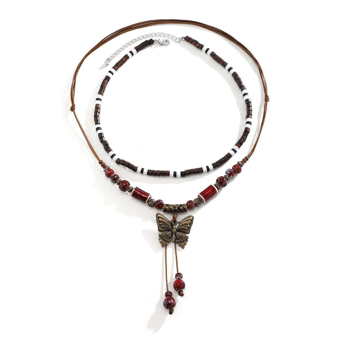 Butterfly Wood Bead Vintage Turquoise Necklace
