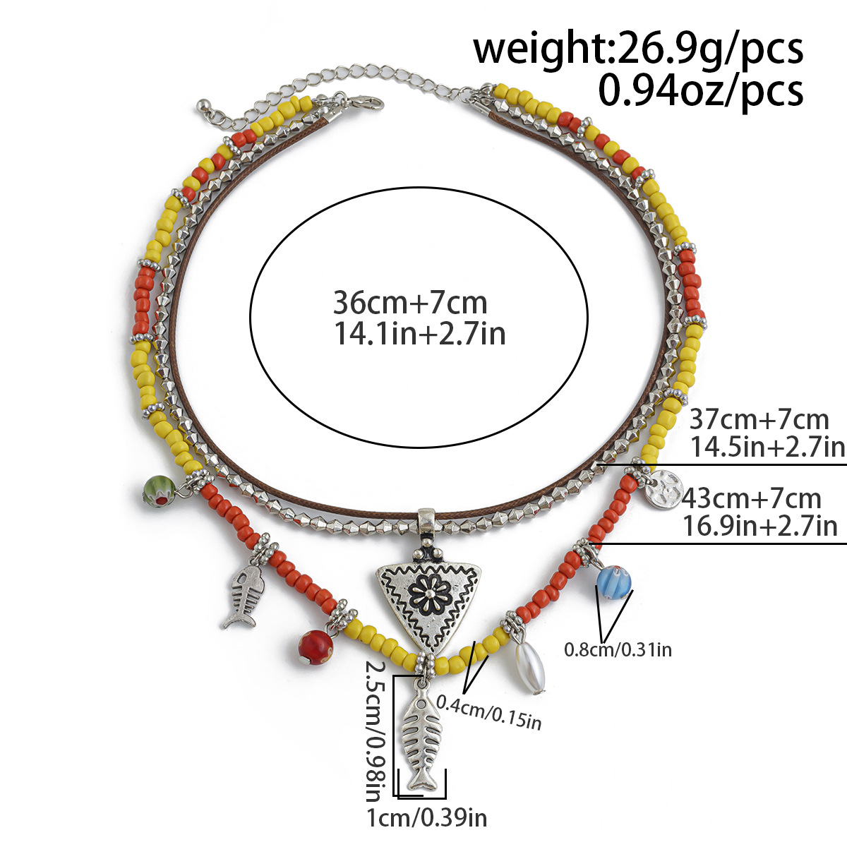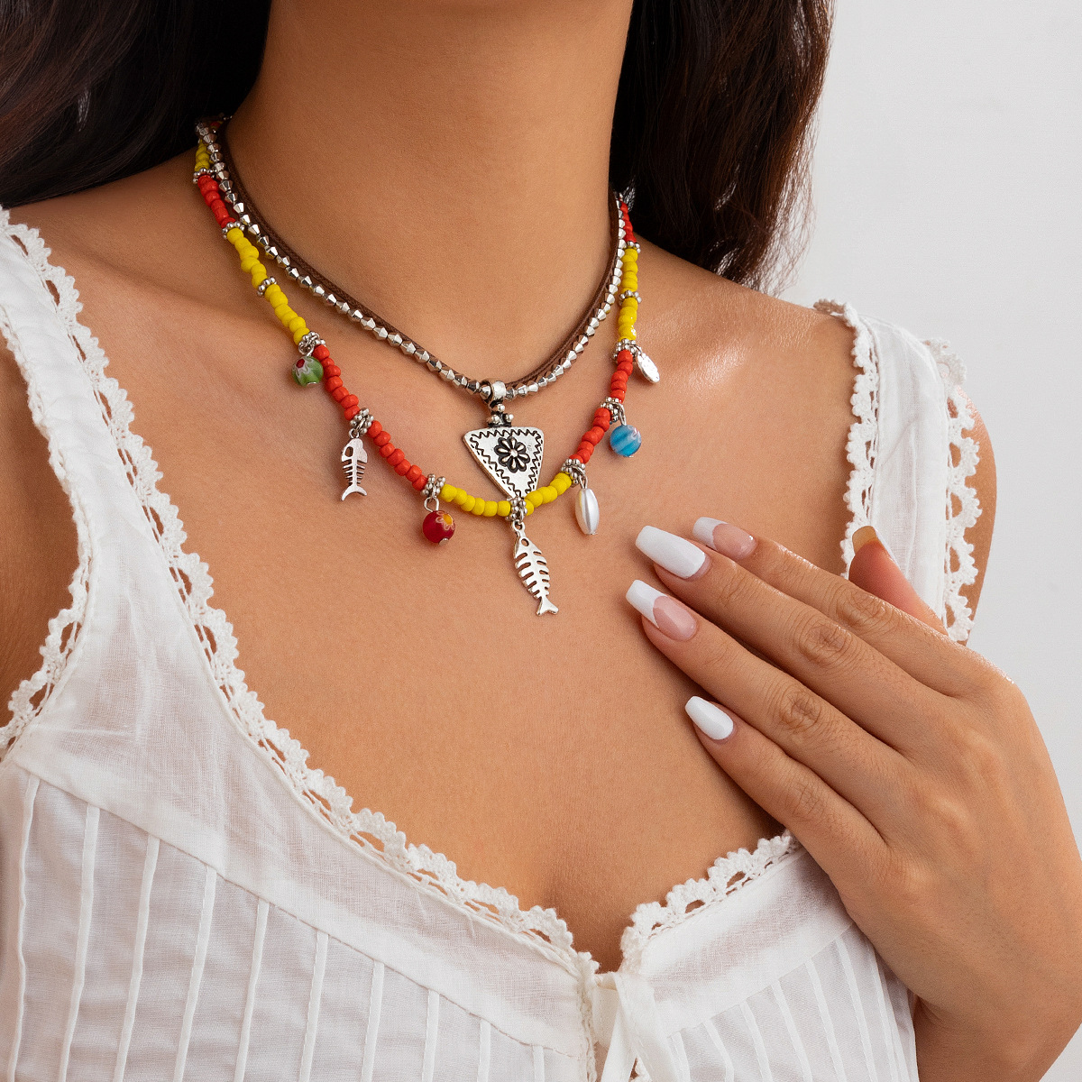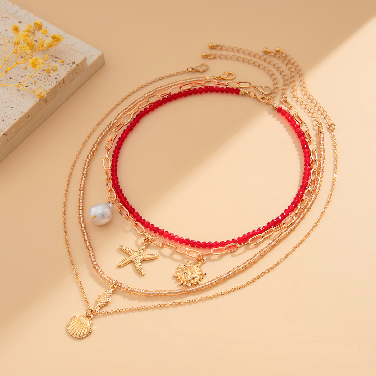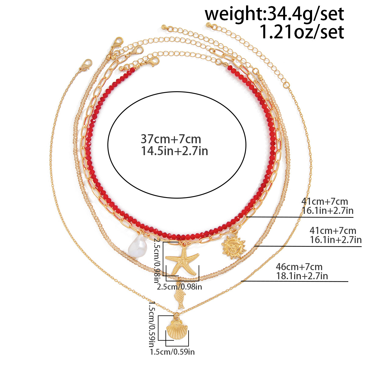 Geometric Seafood Beaded Pendant Multi-layer Necklace