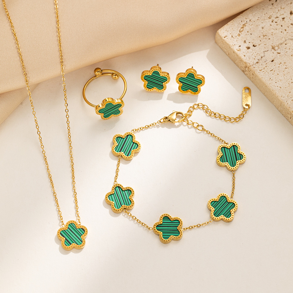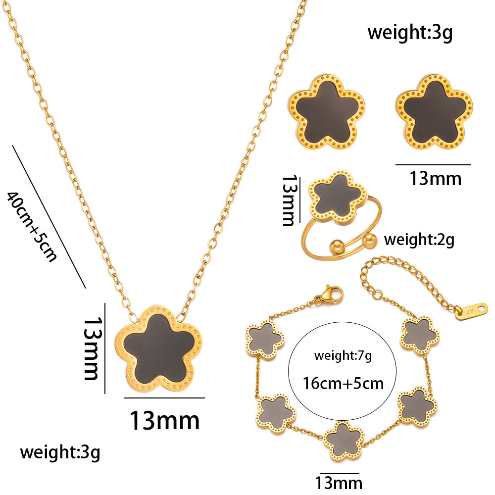 Fashion Plum Blossom Jewelry Set - Titanium Steel Necklace, Earrings, Ring