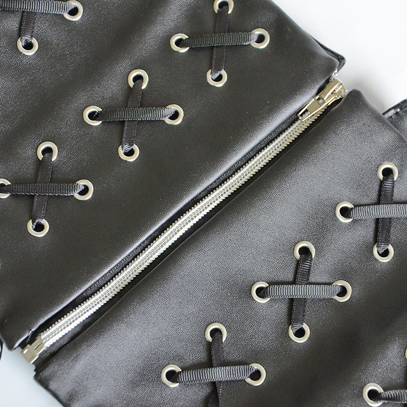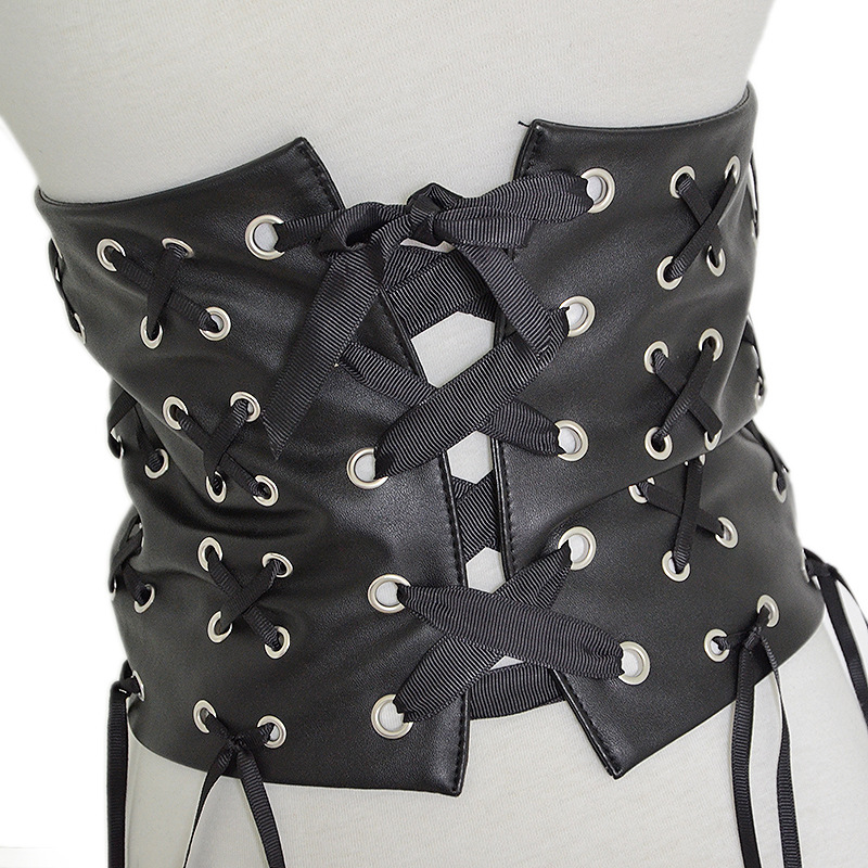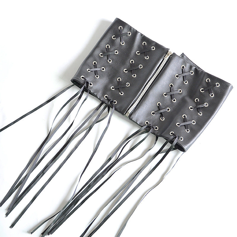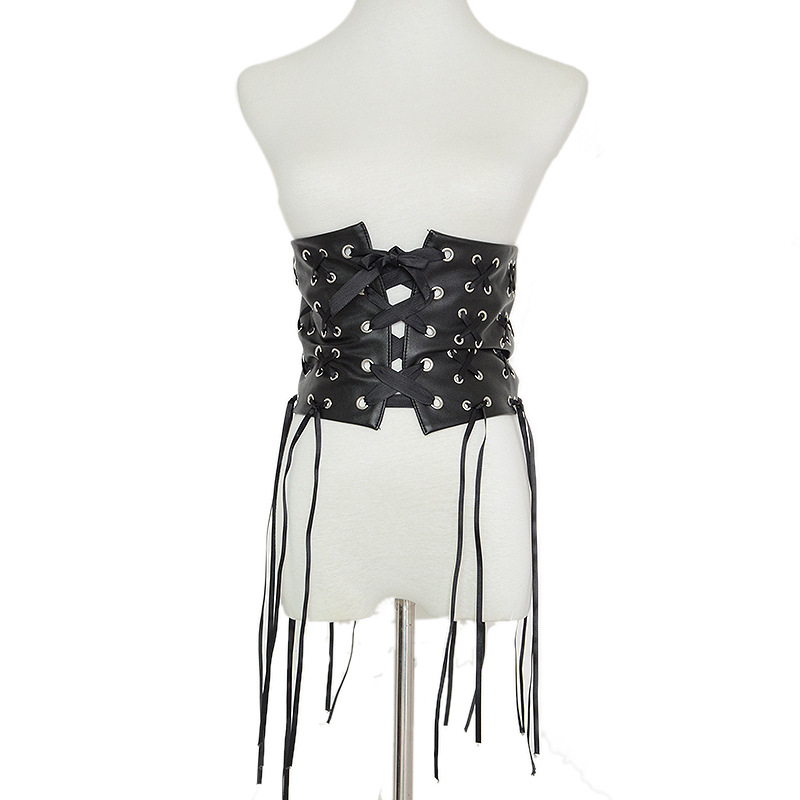 Faux leather fringed decorative strap wide belt