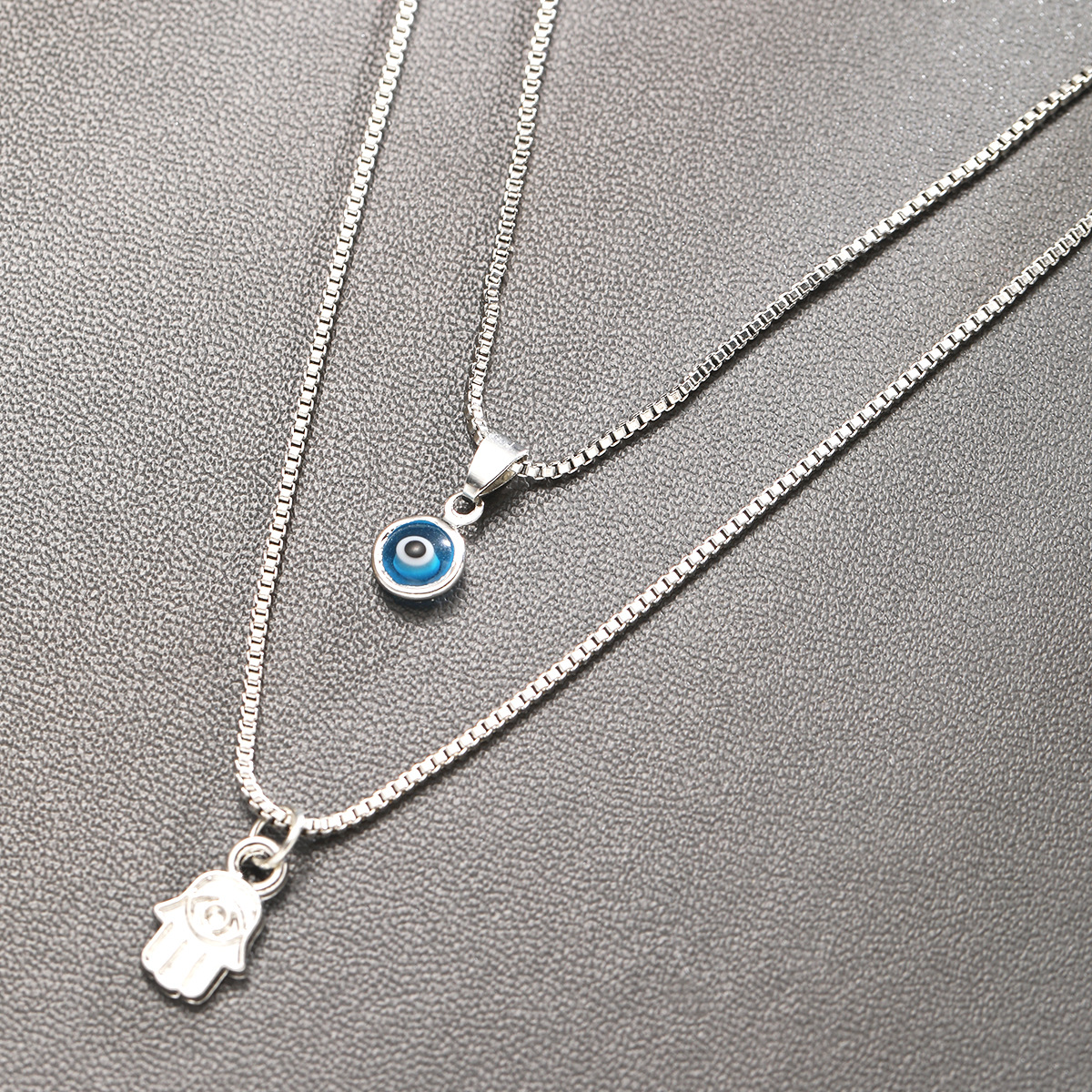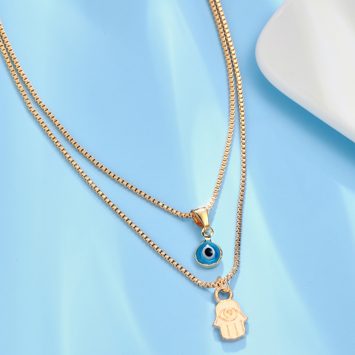 Evil Eye Palm Necklace Gold 2-Piece Set