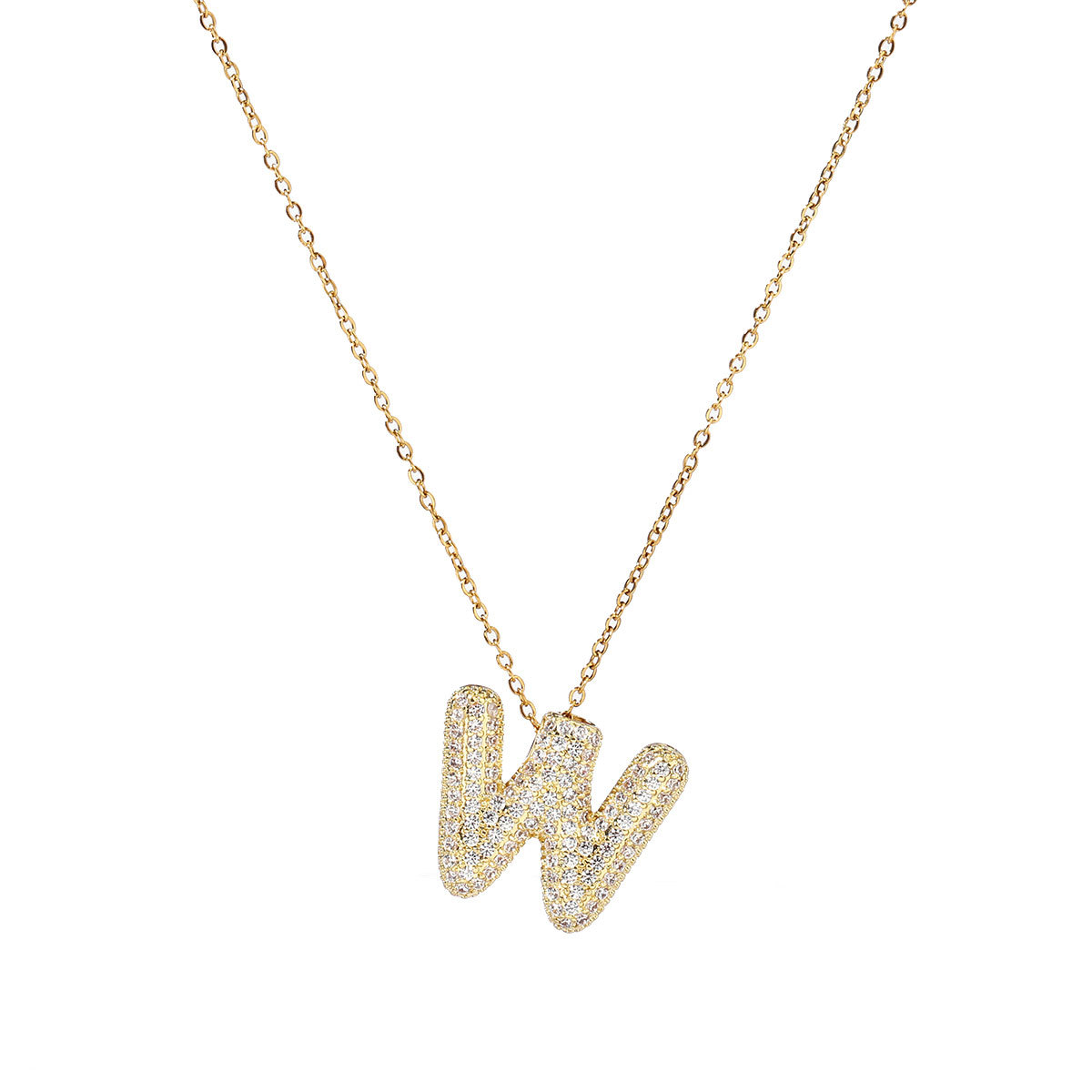 fashion A-Z Copper Zircon Letter Necklace Pendant