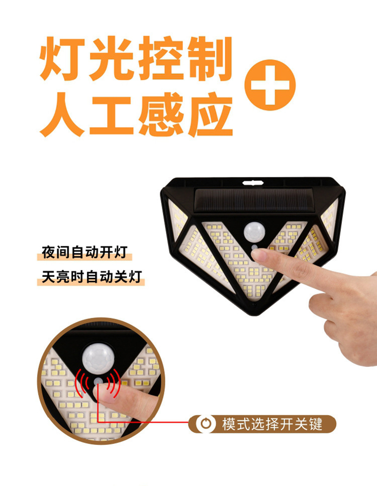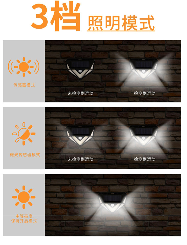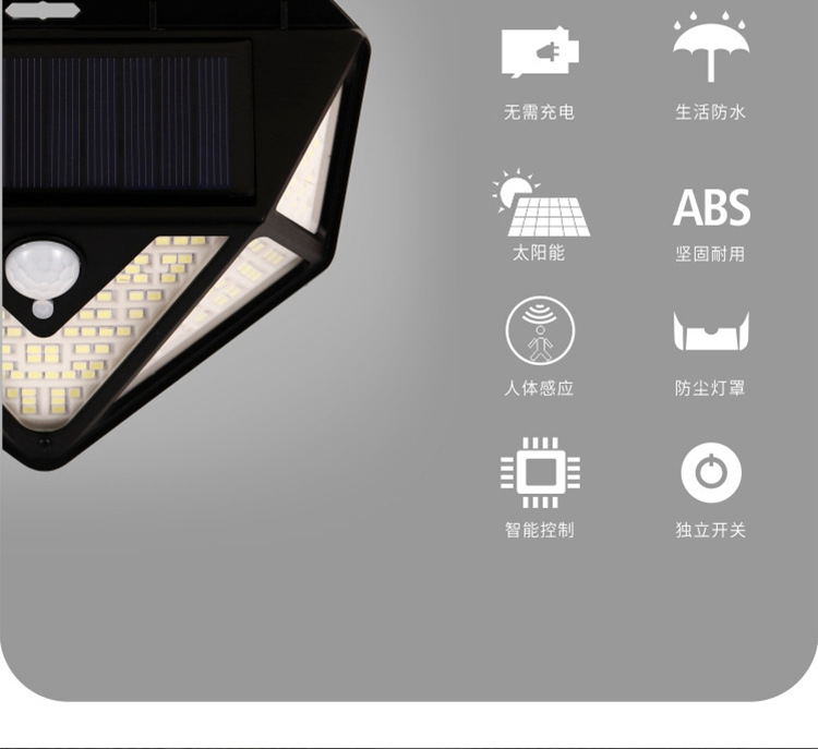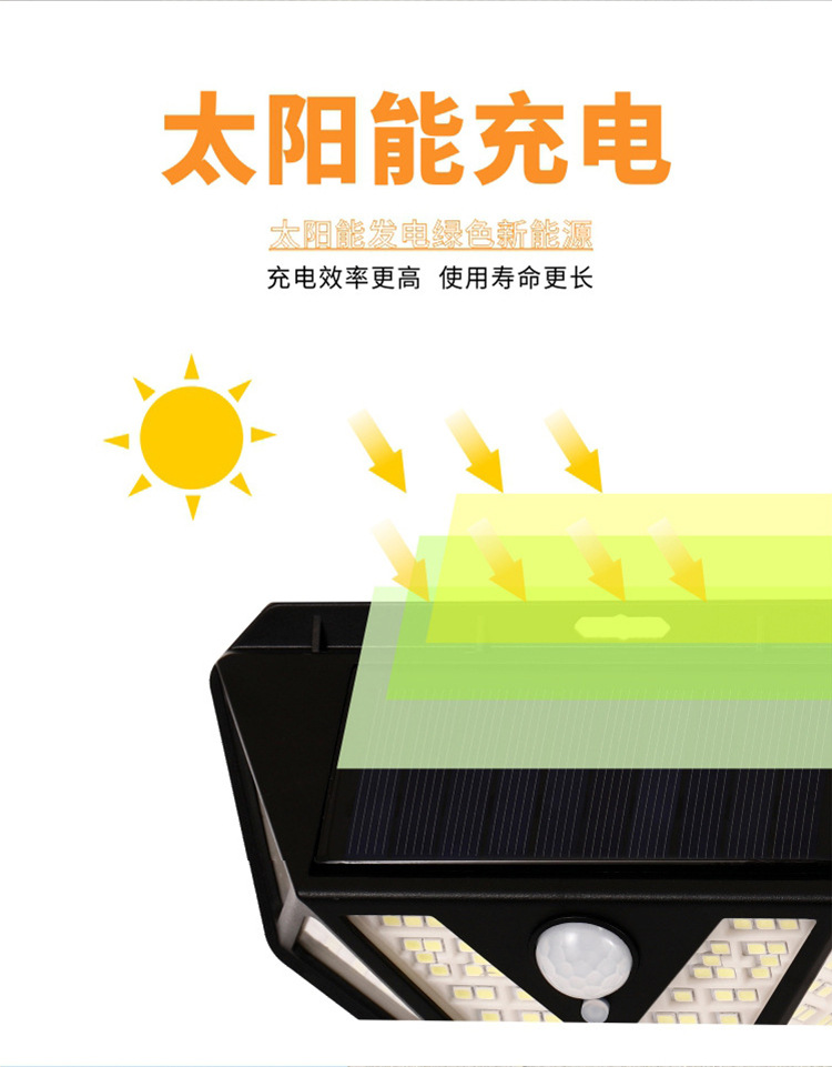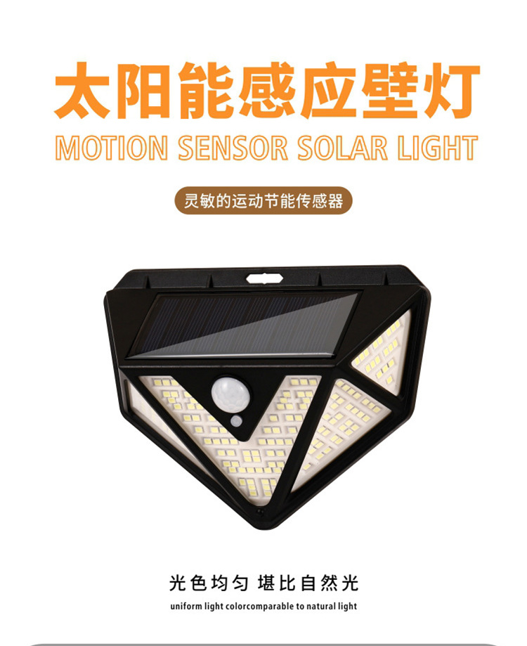Five-Sided 166-LED Solar Motion Sensor Wall Light