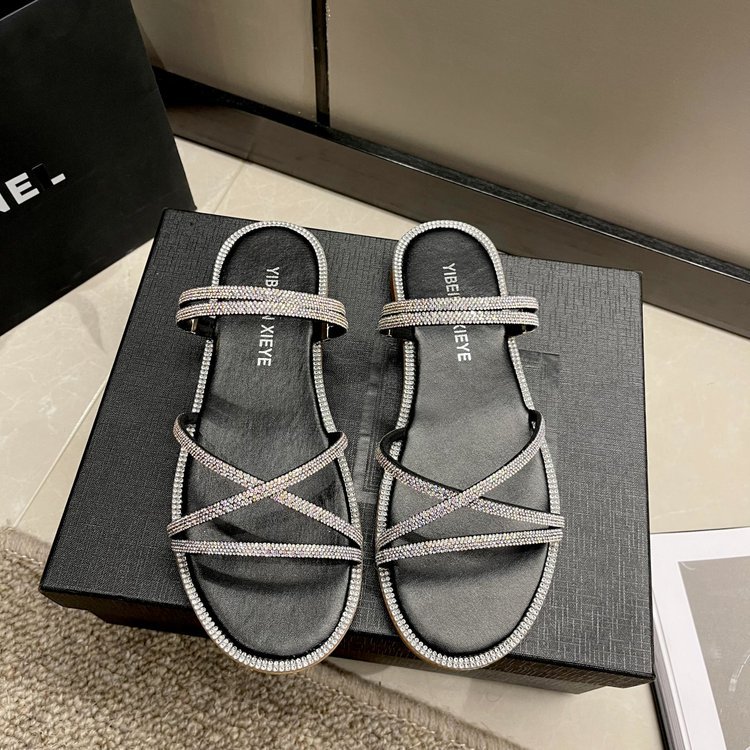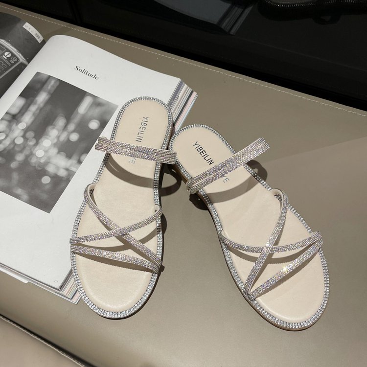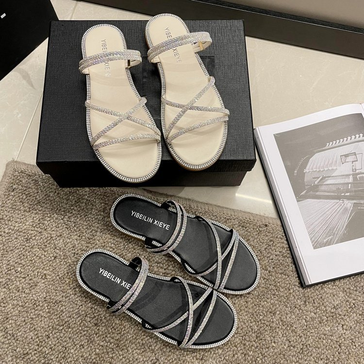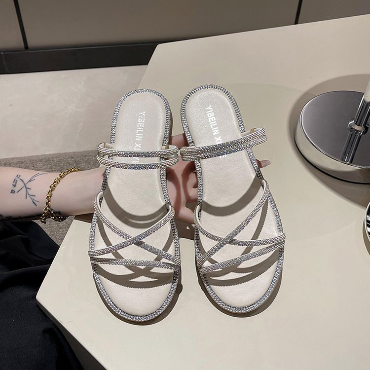 Flat-bottomed rhinestone slippers women's shoes