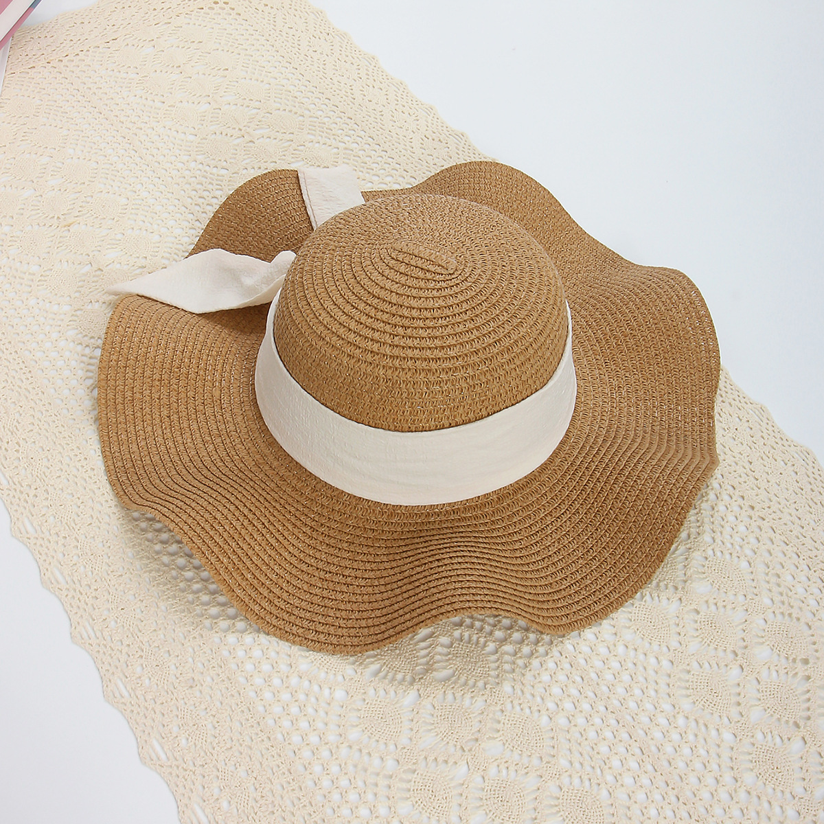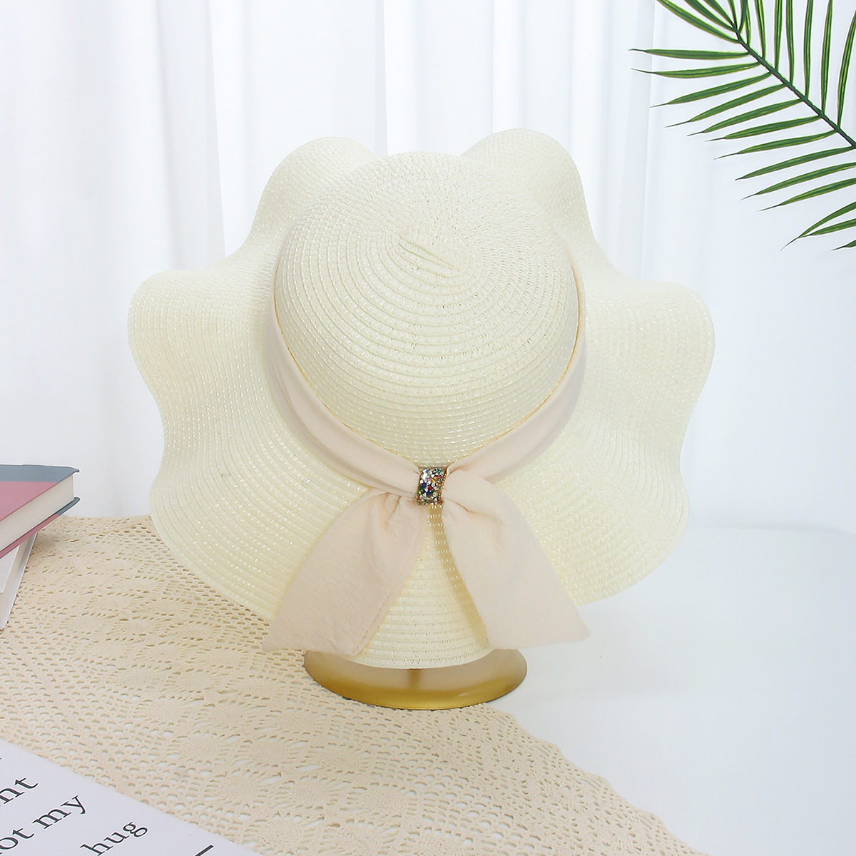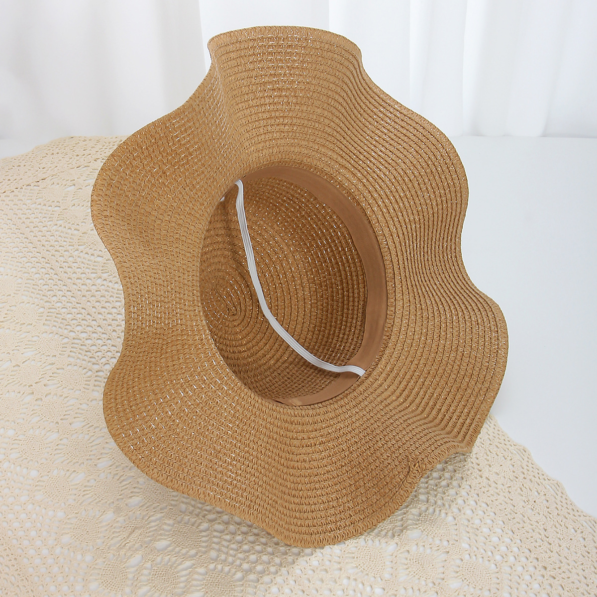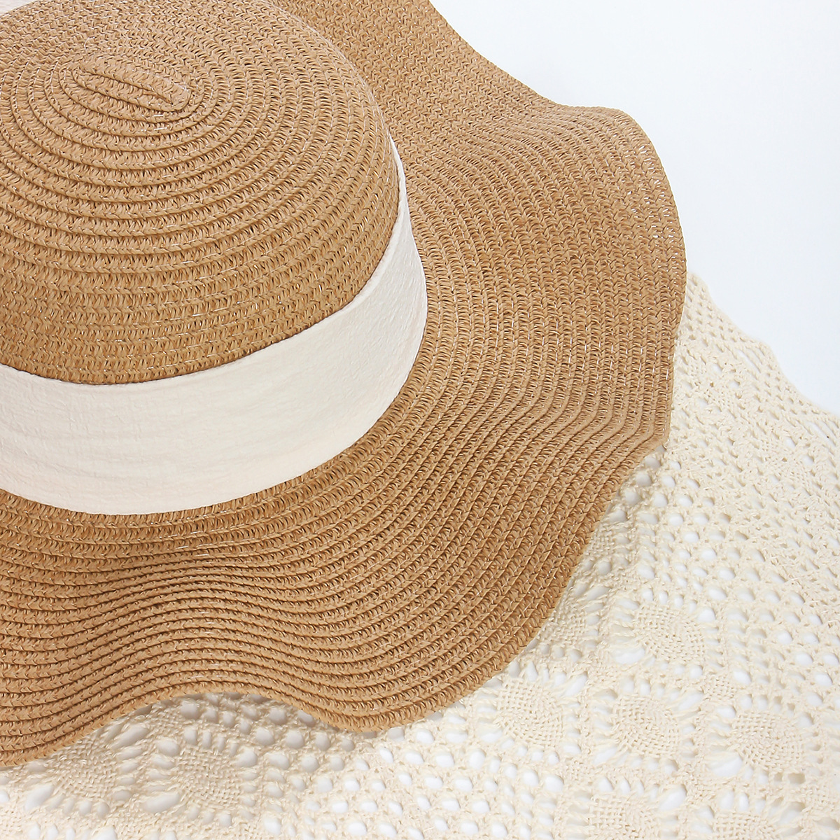 Floral Wave-Edge Straw Hat Women Summer French Beach Wide-Brim Sun Hat