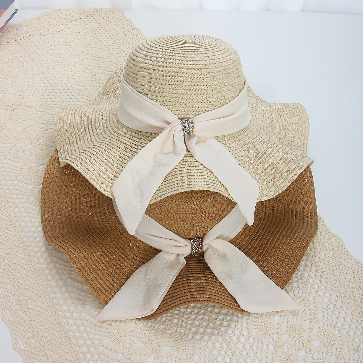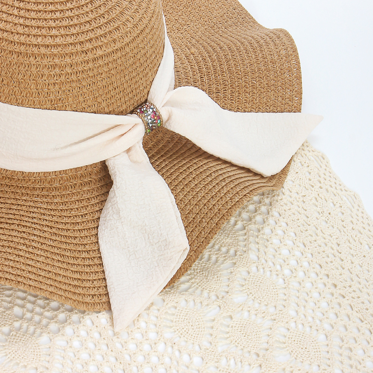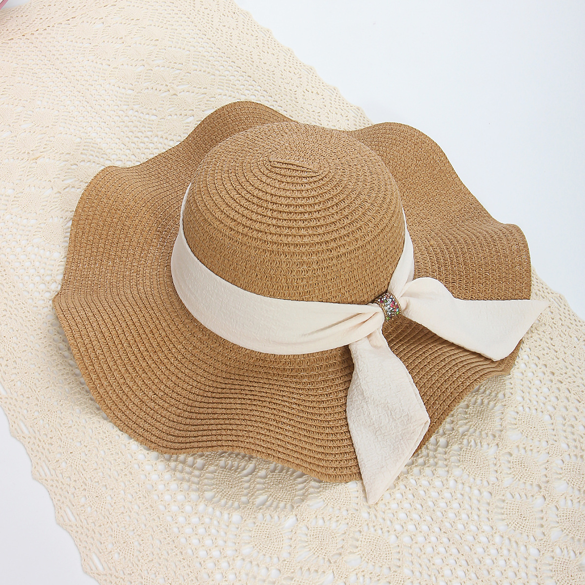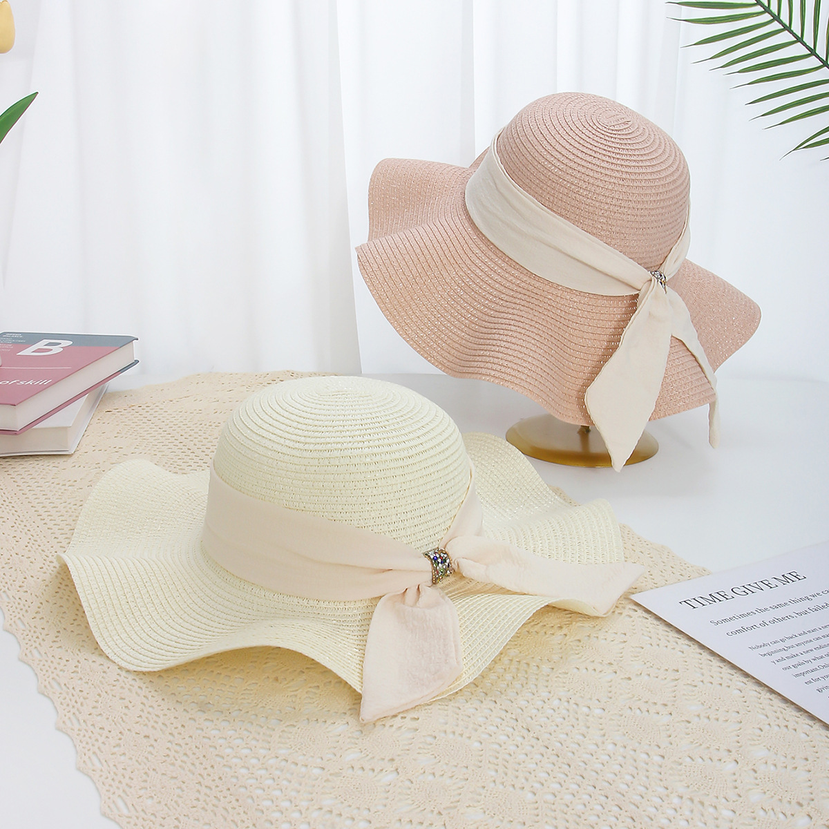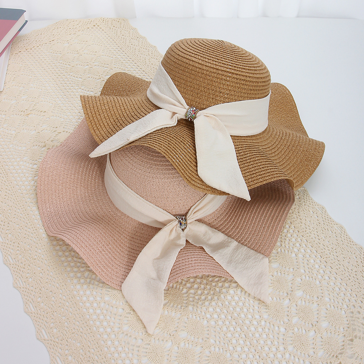 Floral Wave-Edge Straw Hat Women Summer French Beach Wide-Brim Sun Hat