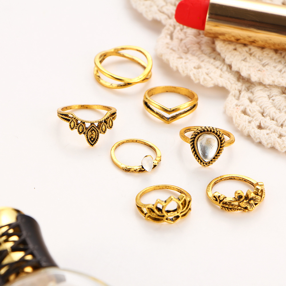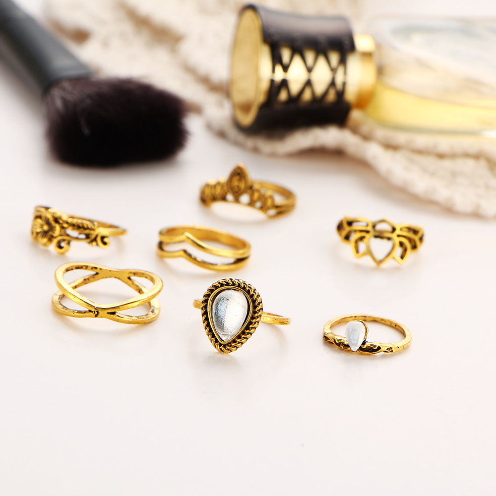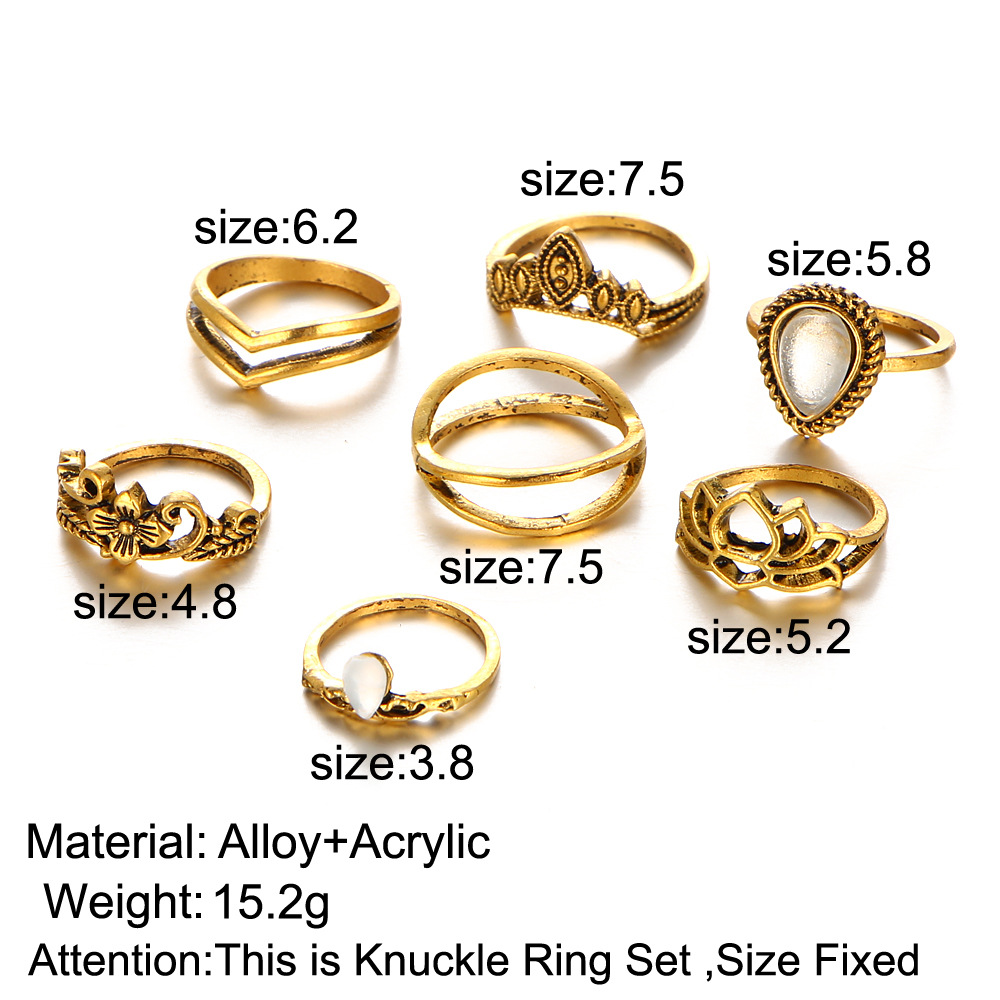 Flower Gemstone Geometric 7-Piece Ring Set