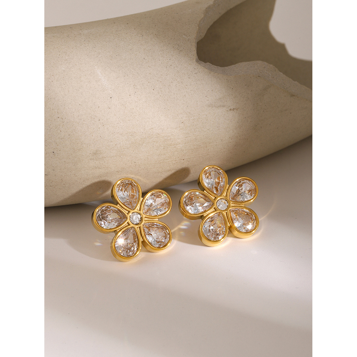 Flower Shaped Zirconia Titanium Steel Earrings