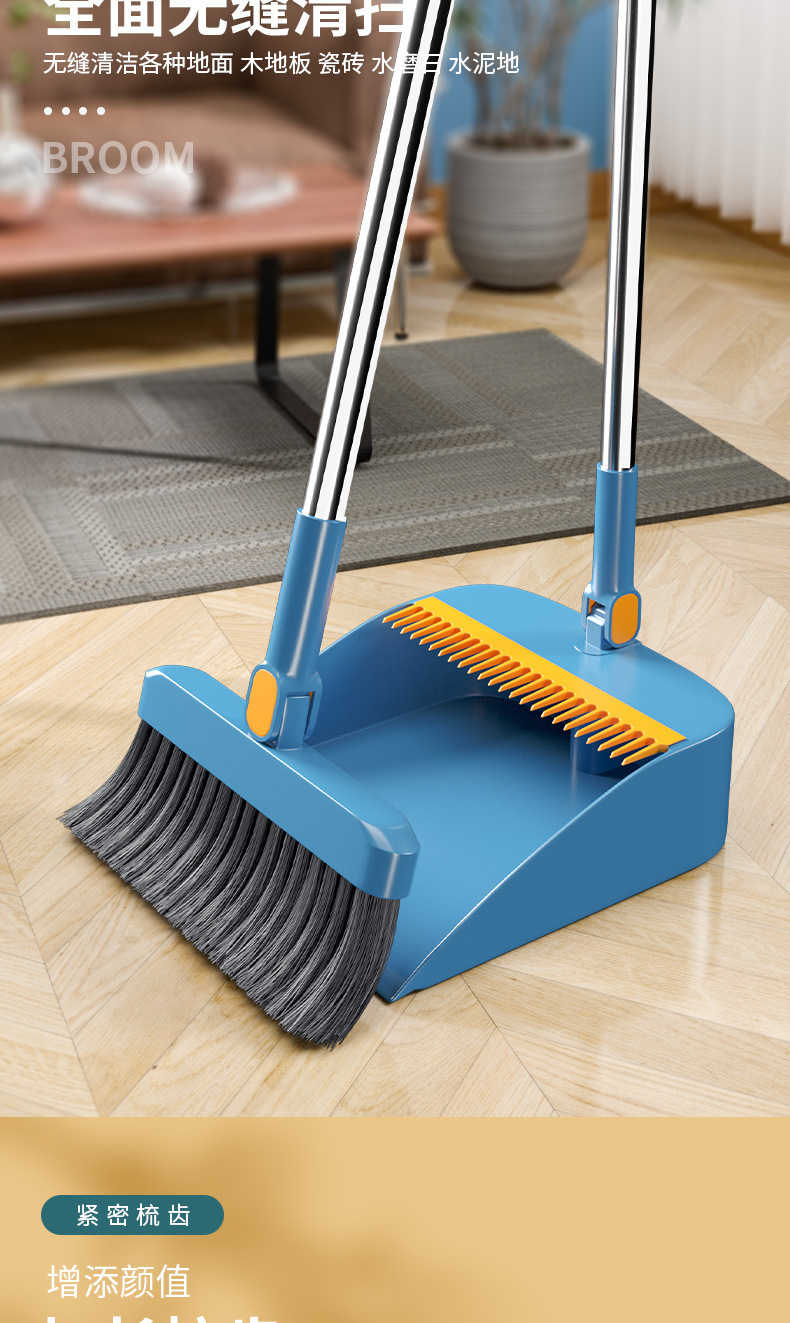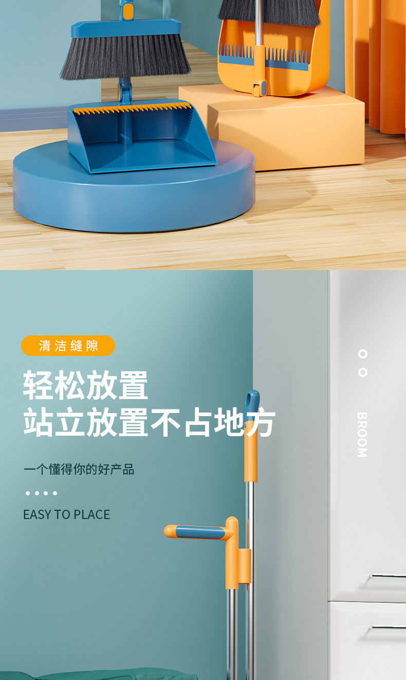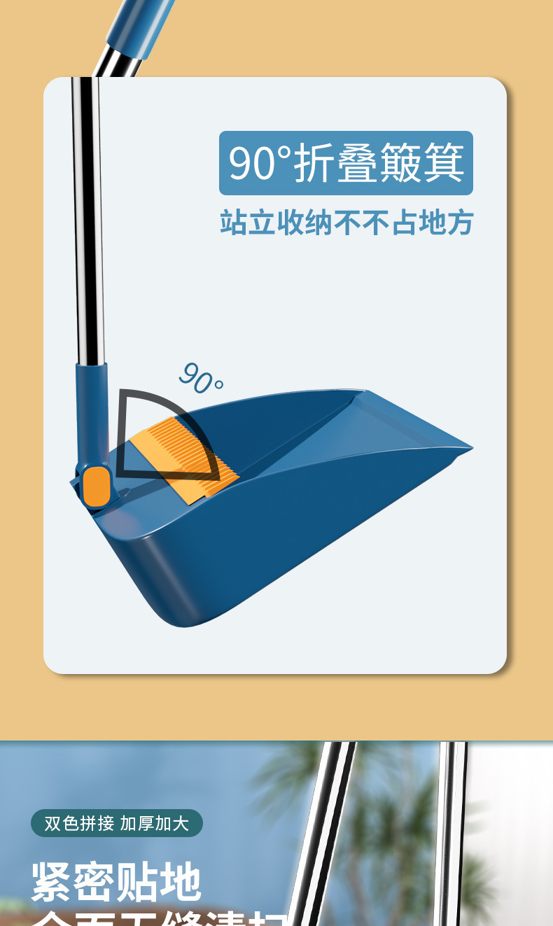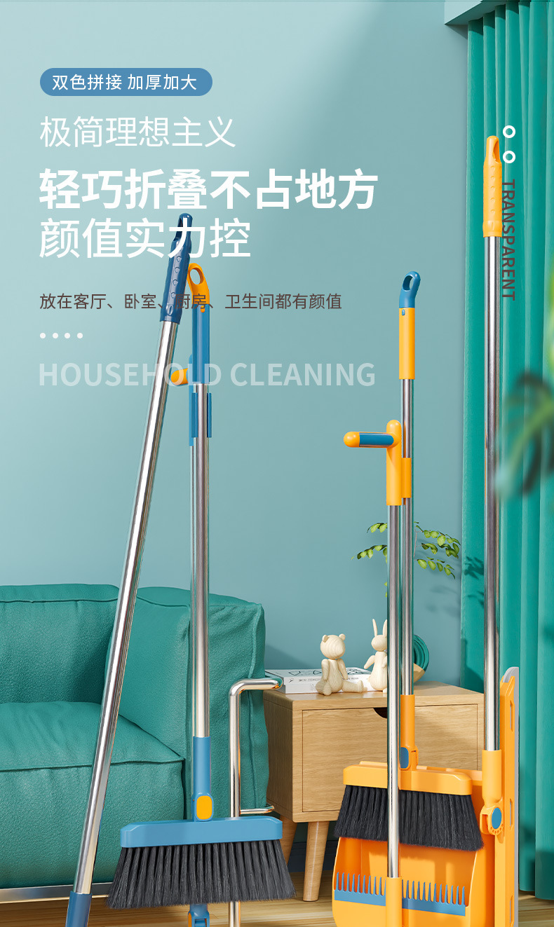 Folding Broom and Dustpan Set, Soft Brush, Hair-Resistant