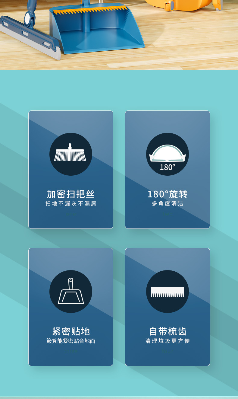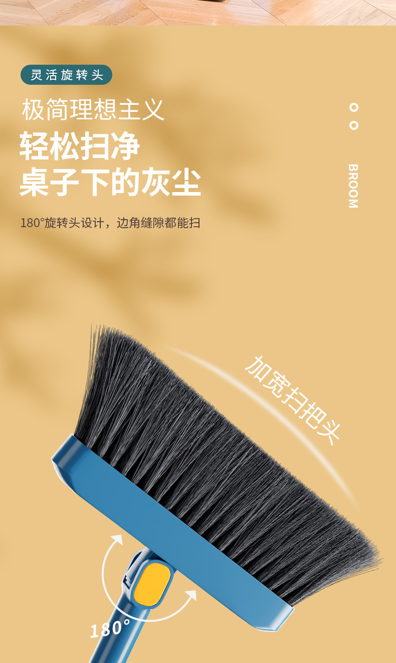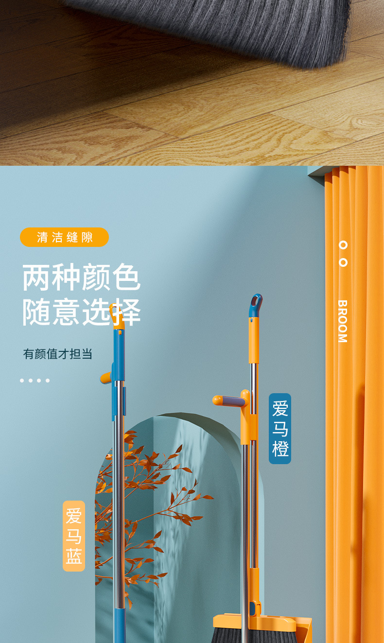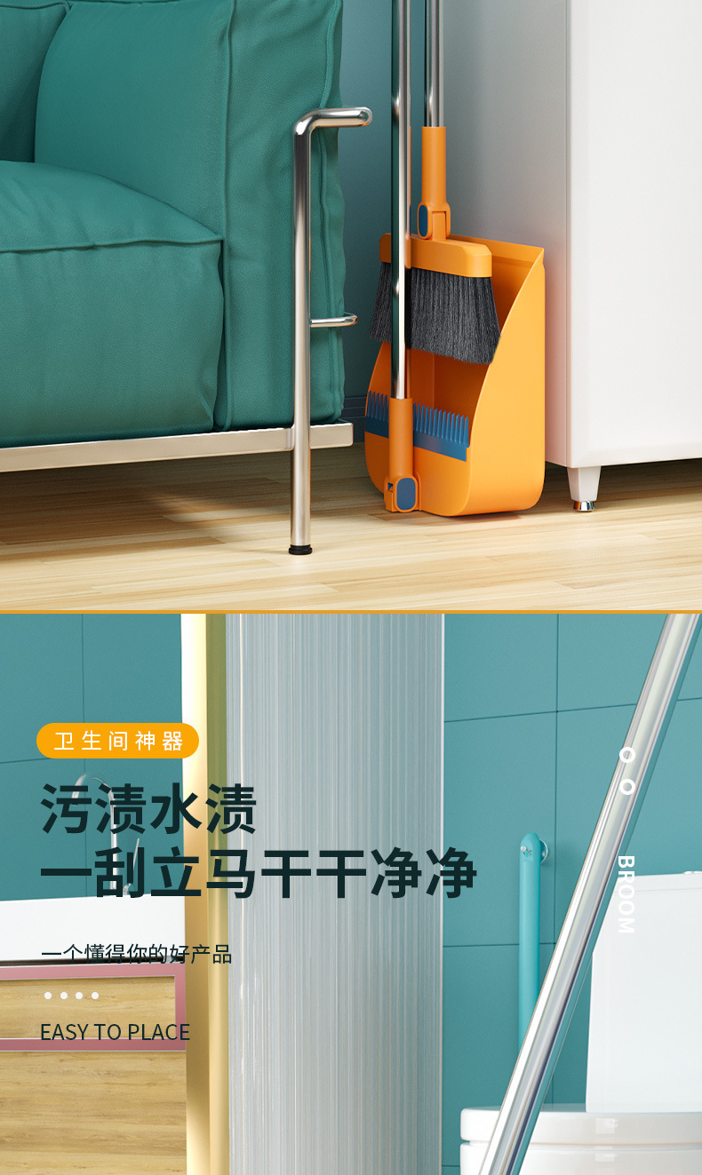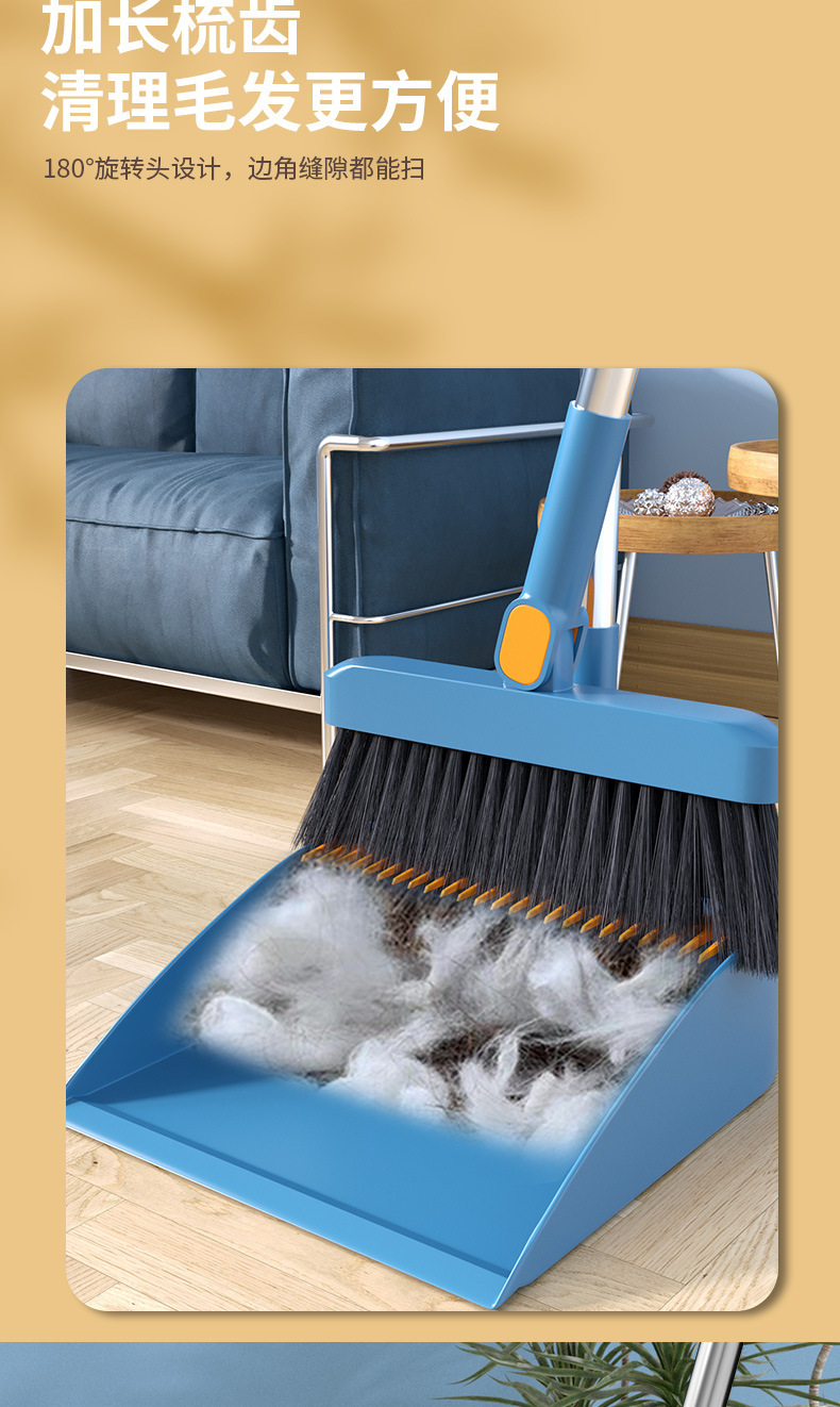 Folding Broom and Dustpan Set, Soft Brush, Hair-Resistant