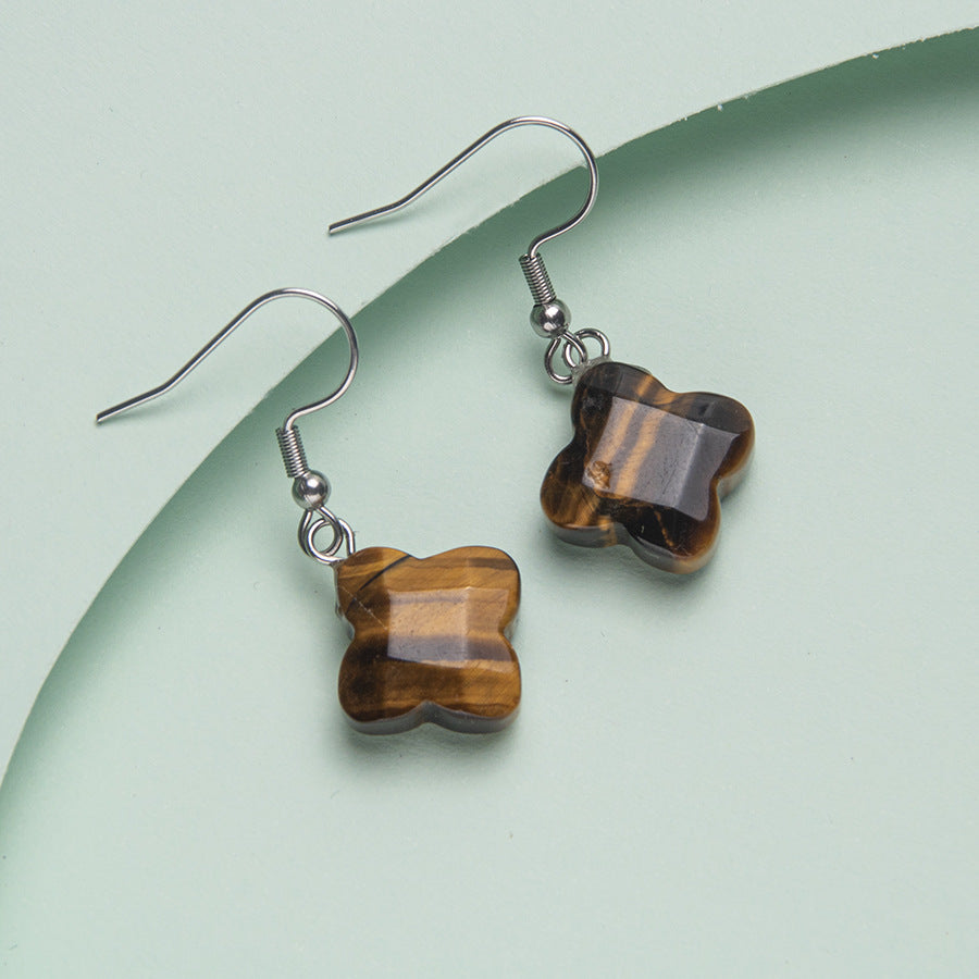 Four-leaf Clover Flower Crystal Stainless Steel Earrings