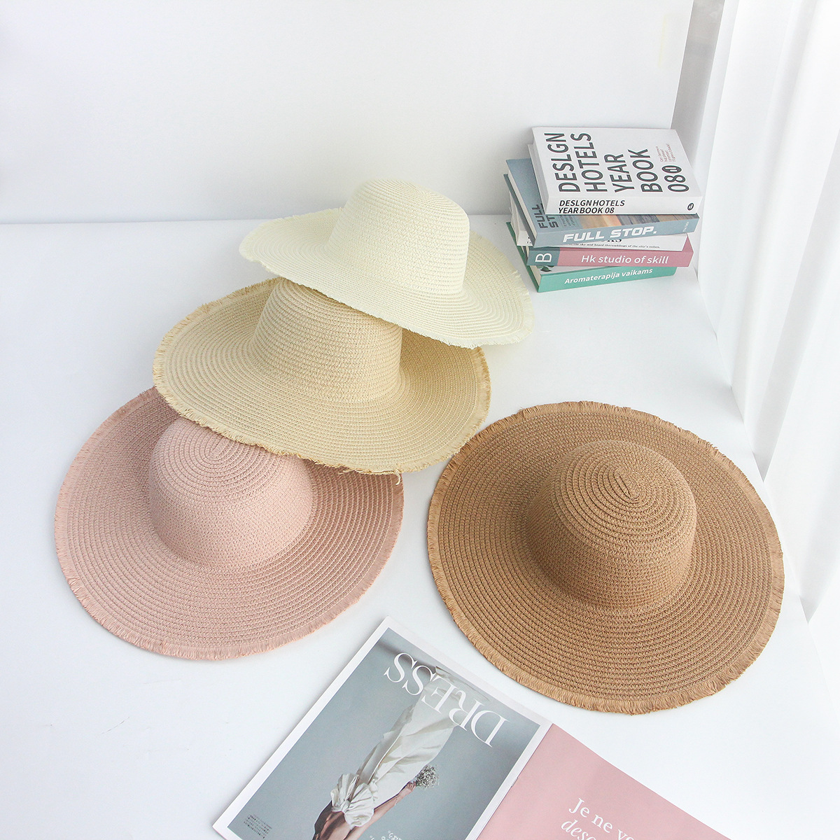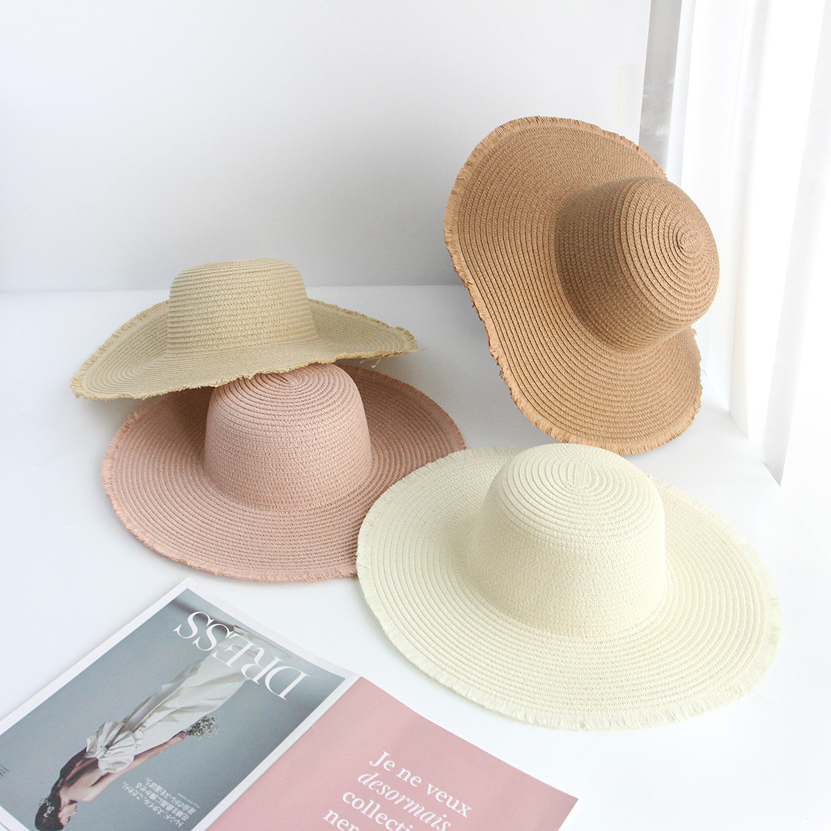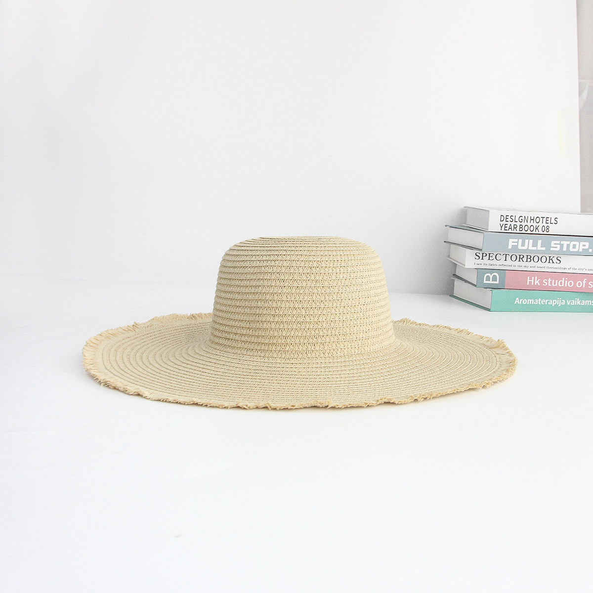 Frayed Wide-Brim Straw Hat Women Summer Sun Protection DIY Blank Vacation Hat
