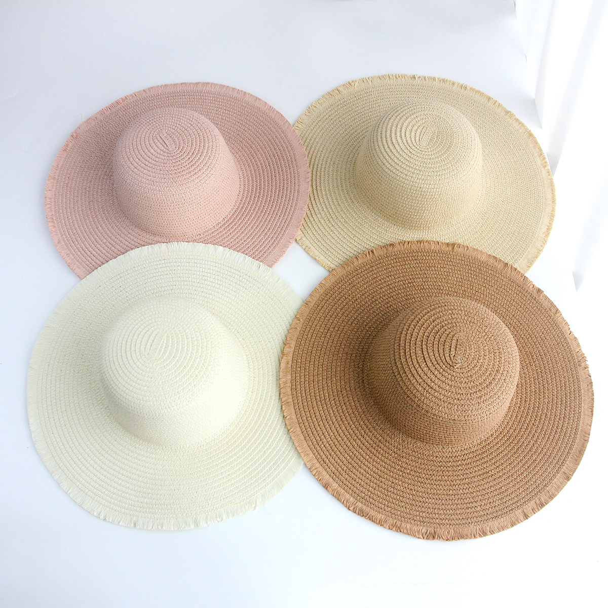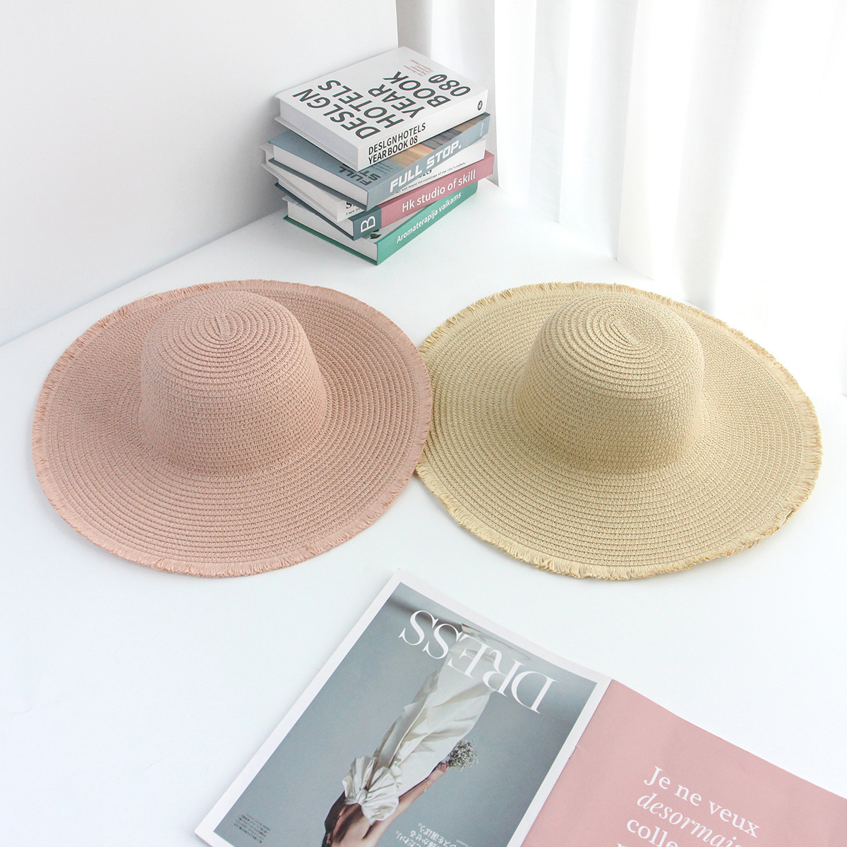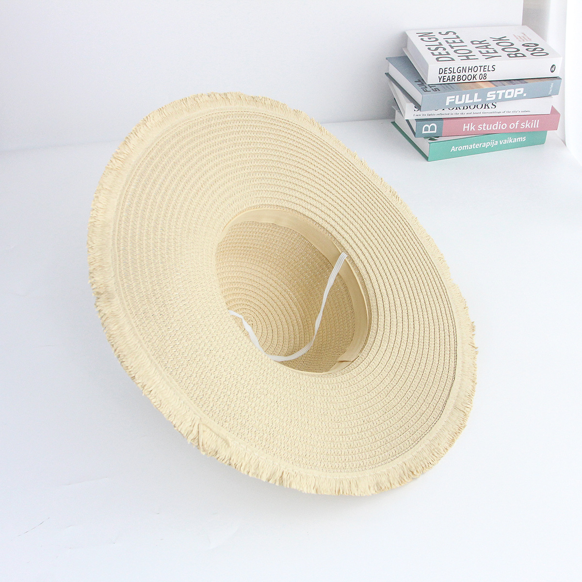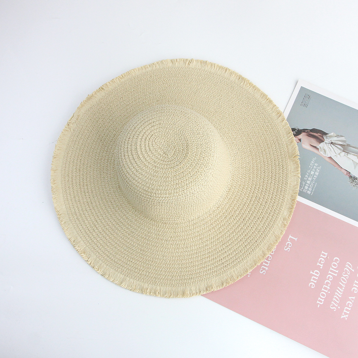 Frayed Wide-Brim Straw Hat Women Summer Sun Protection DIY Blank Vacation Hat