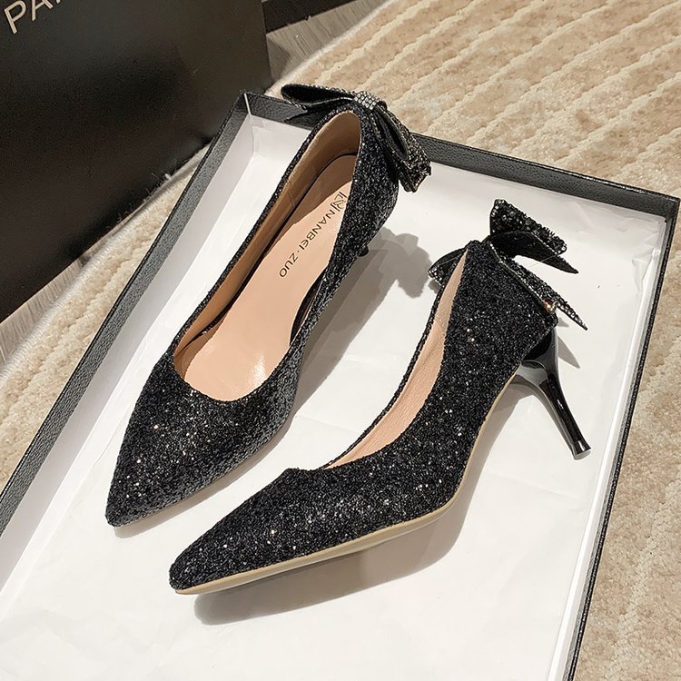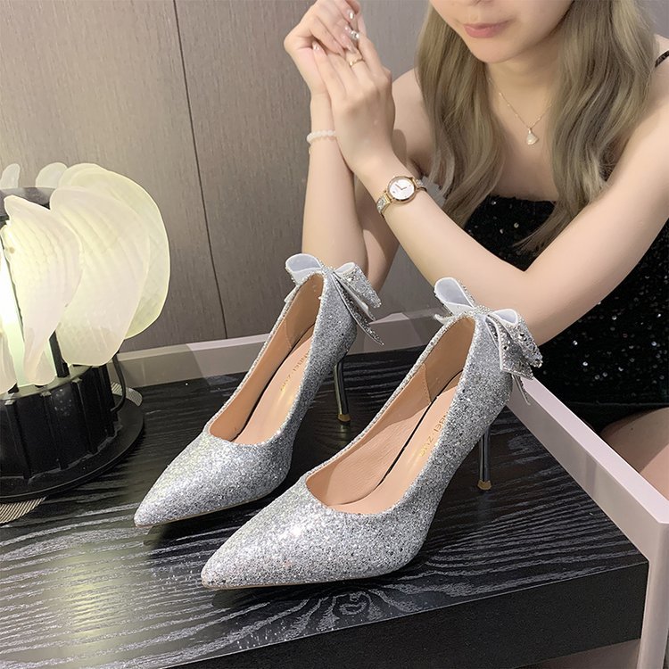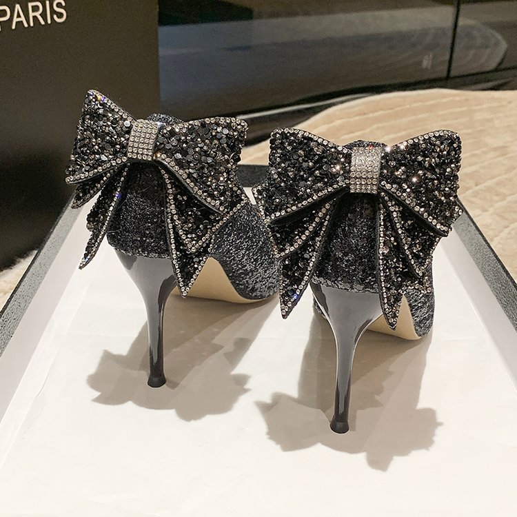 Bow crystal shoes women