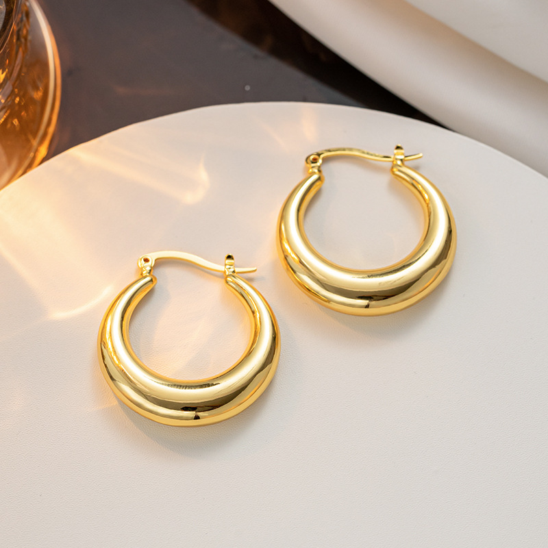 French Vintage Hoop Earrings, Hollow Crescent, Non-fading Metal, Chic Lady's Jewelry