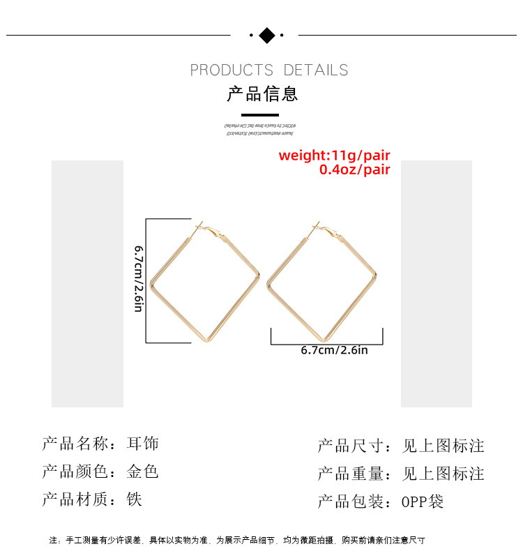 French Vintage Rhombus Metal Earrings