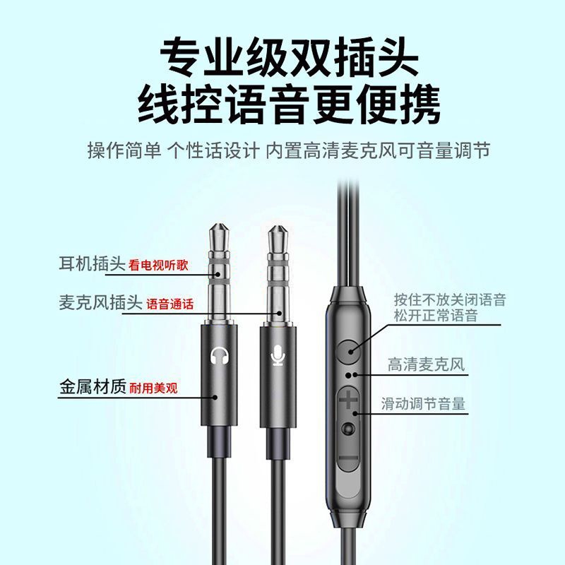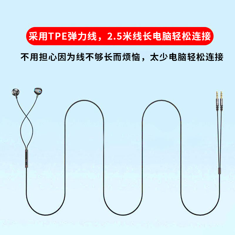 Gaming Dual-Plug Wired Earphones 2.5m Bass
