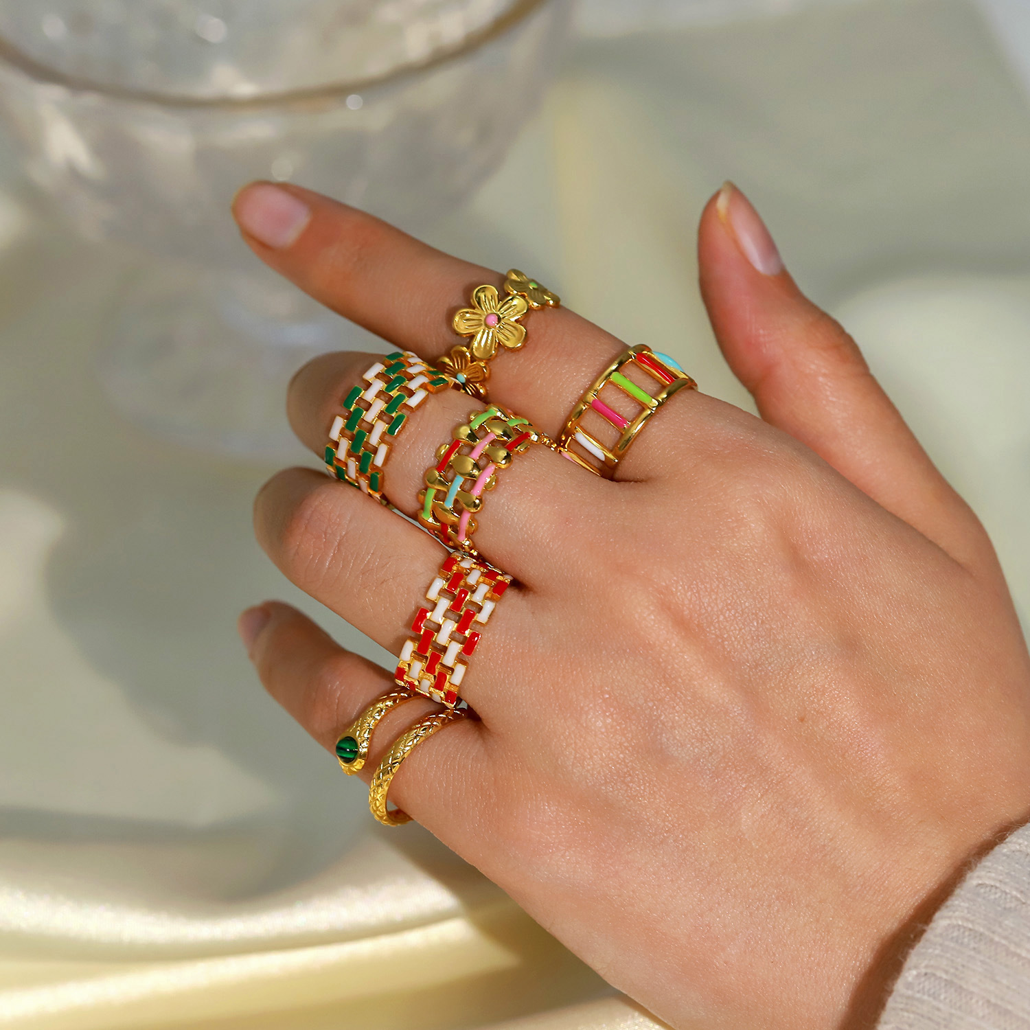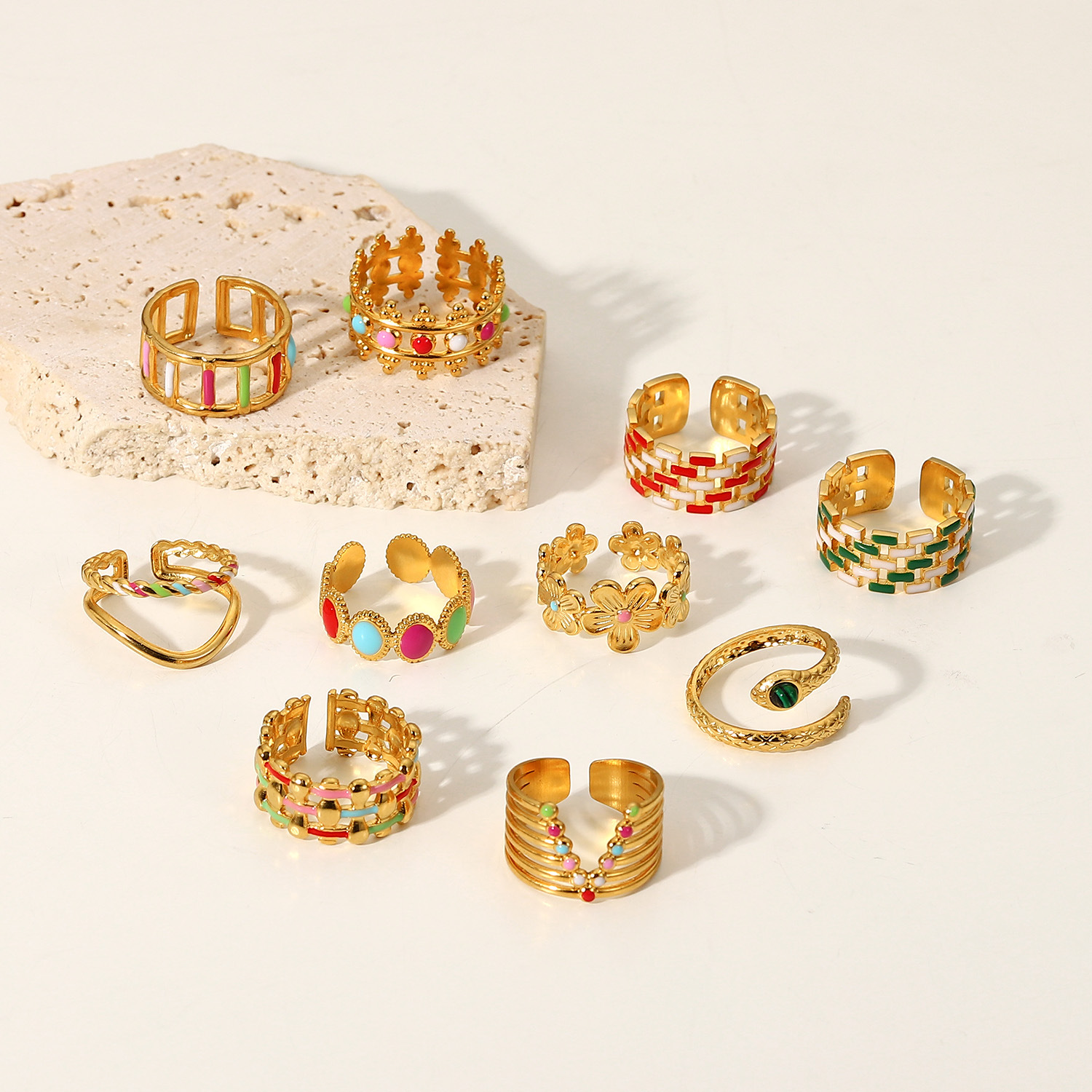 Geometric colorful oil drop ring
