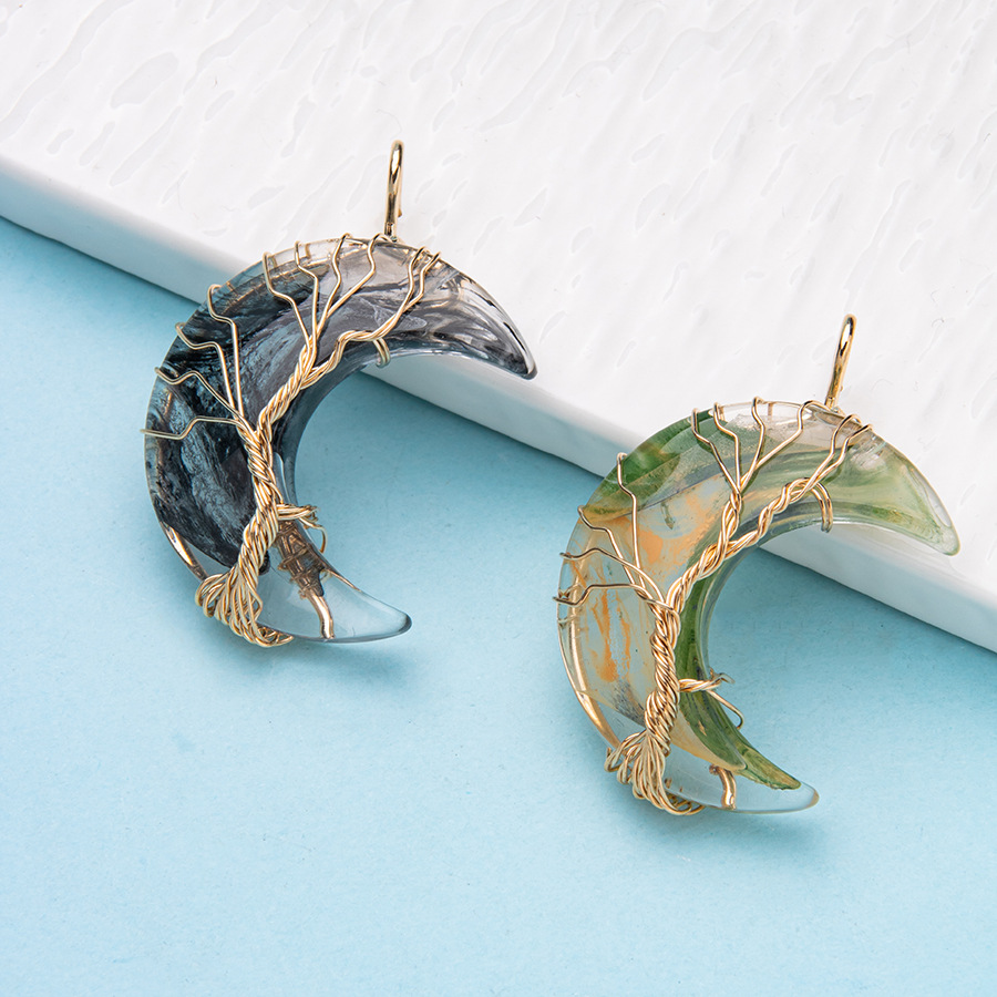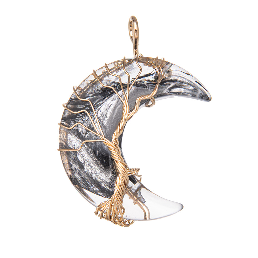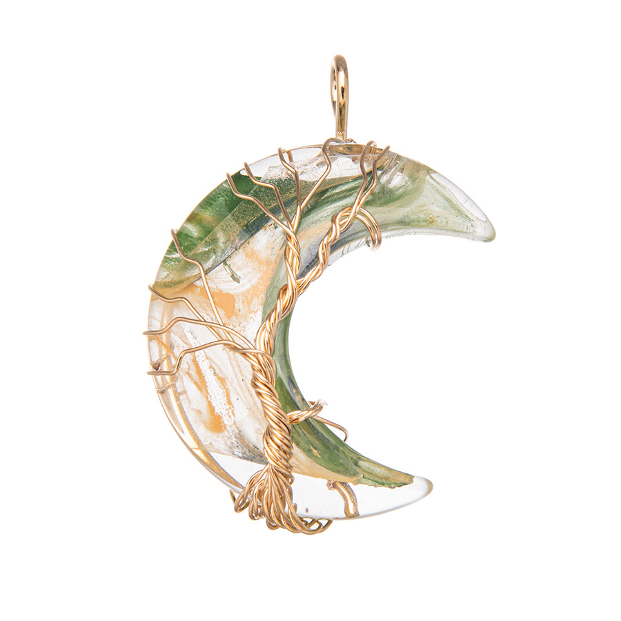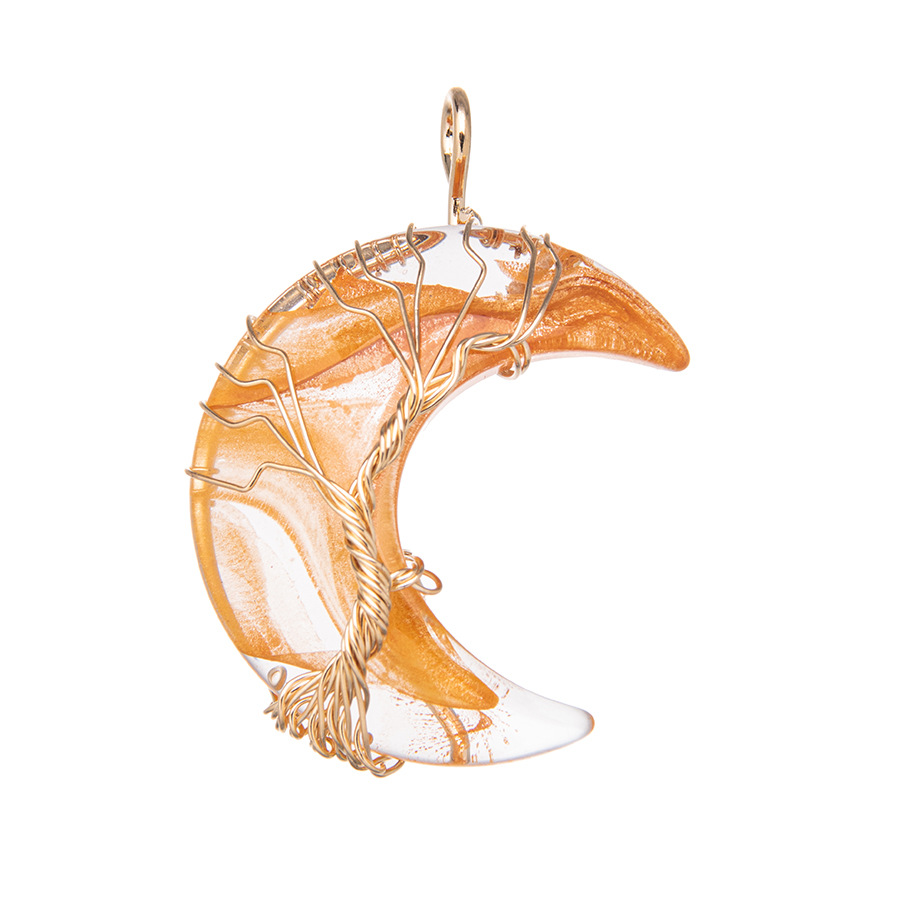 Ghost Bronze Wire Wrap Resin Moon Pendant