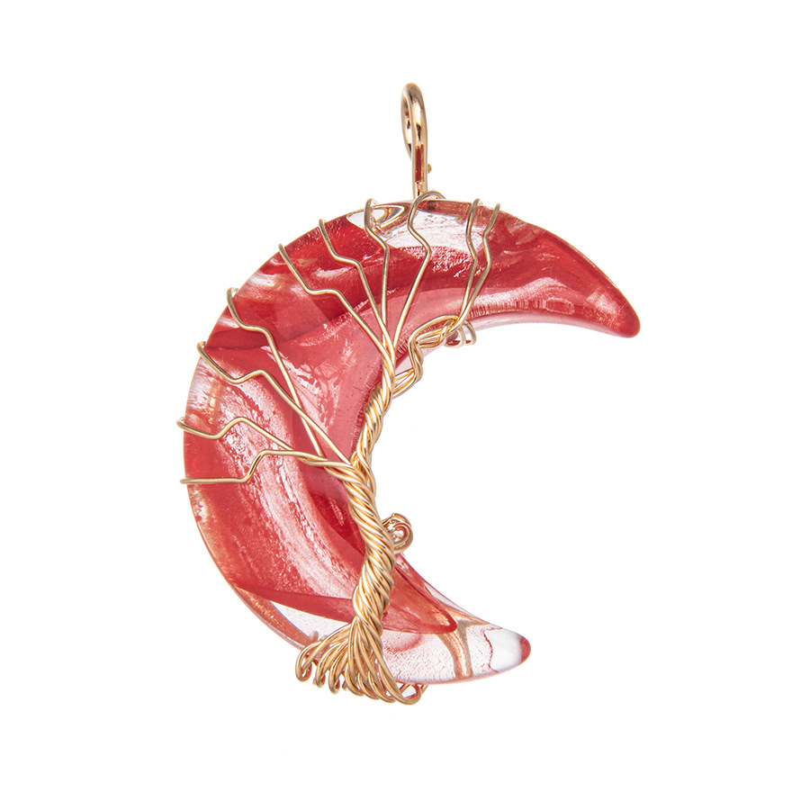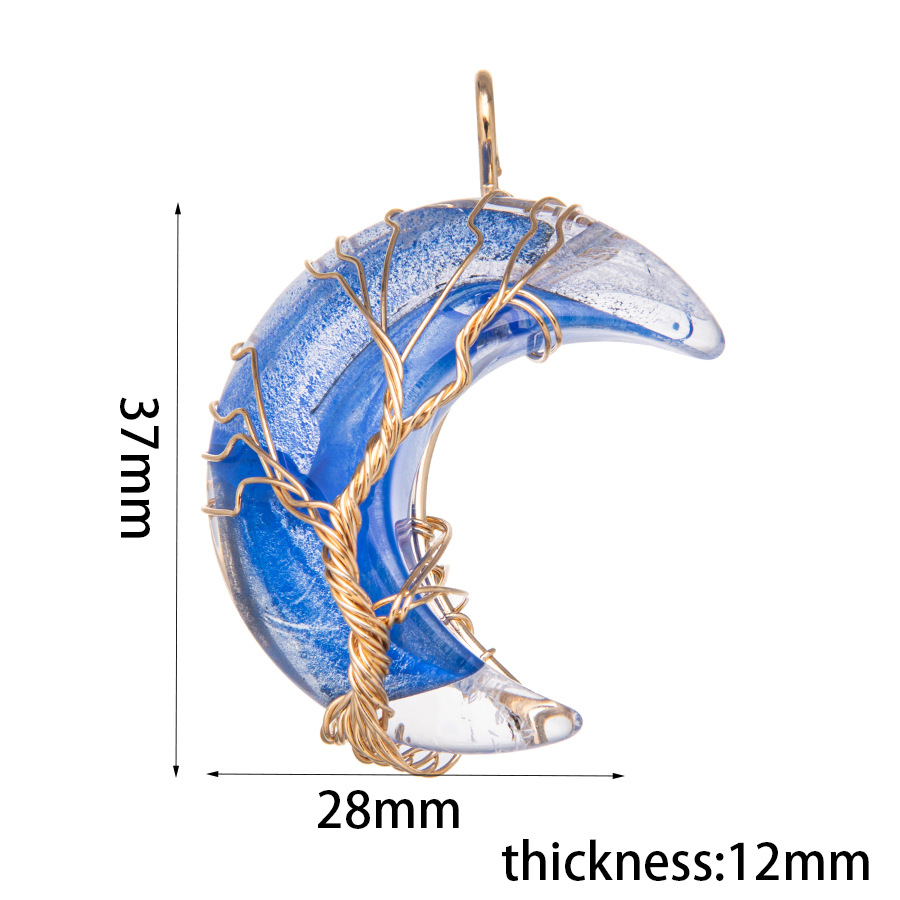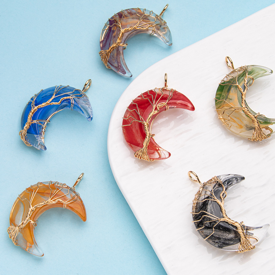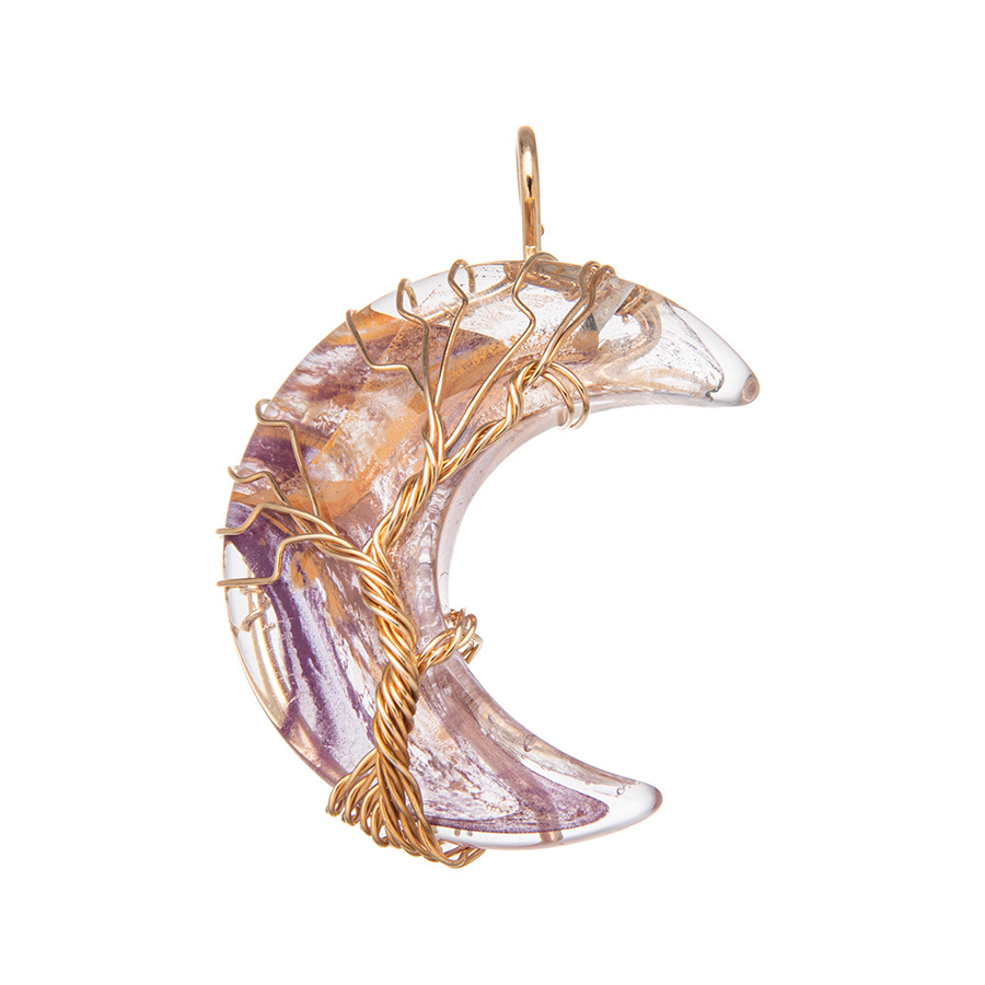 Ghost Bronze Wire Wrap Resin Moon Pendant