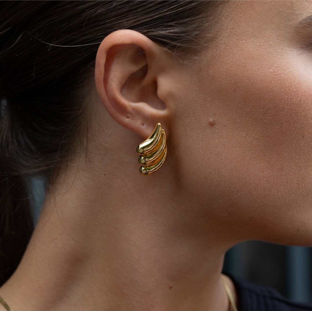 Glossy small water drop wing earrings