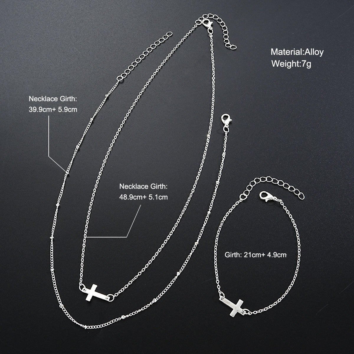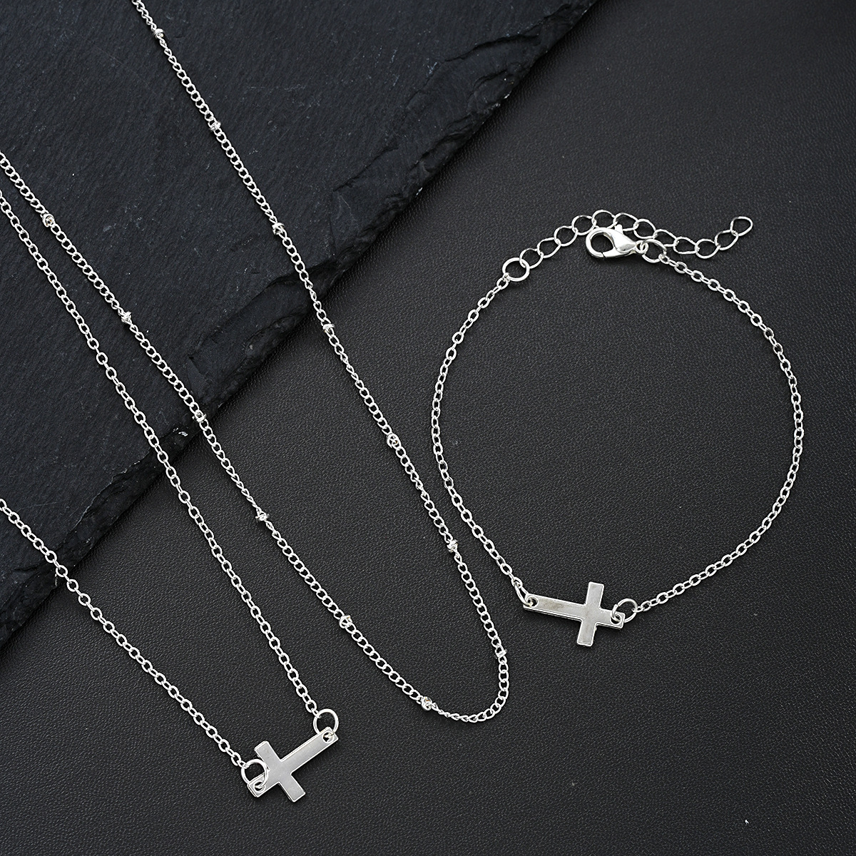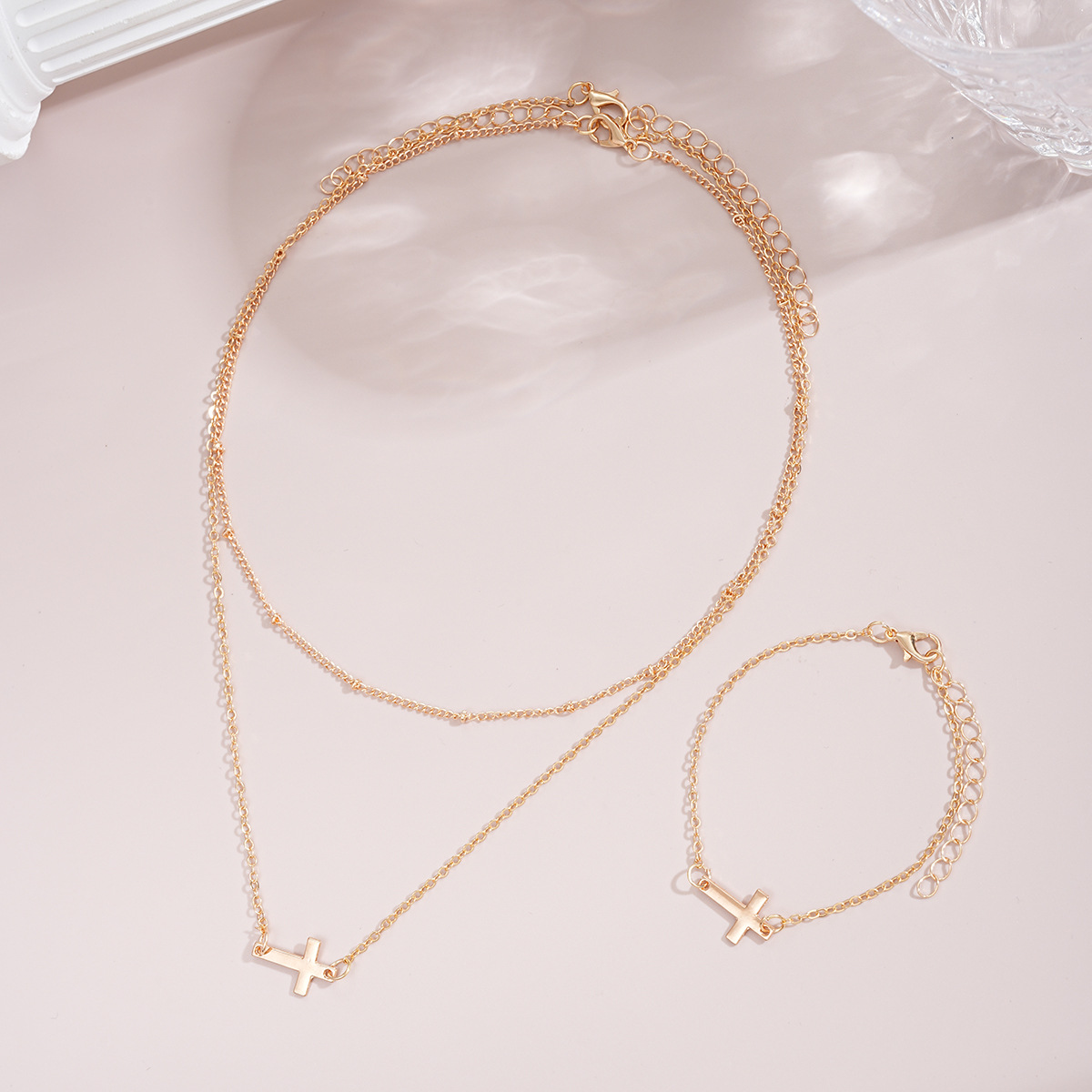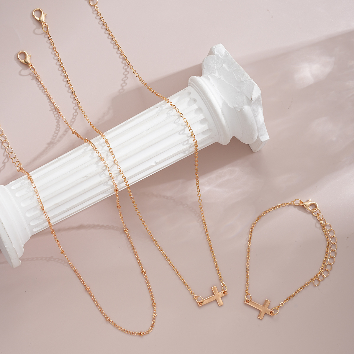Gold Cross Bracelet Necklace Set 2 Pieces