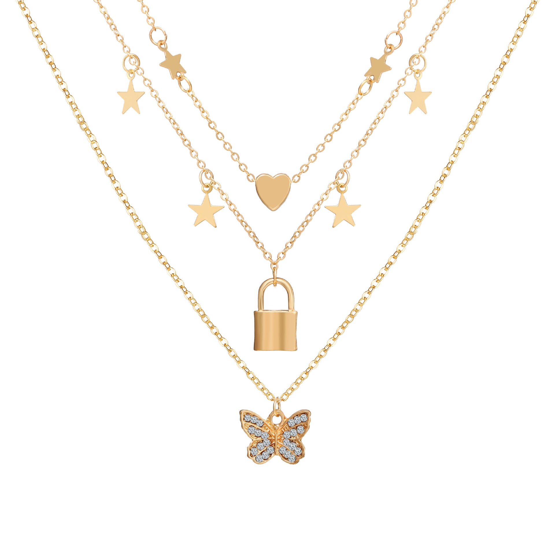 Gold Diamond Butterfly Pendant Necklace Creative Stacking