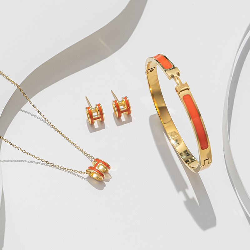 Gold H Letter Enamel Bracelet, Couples Set, Wholesale