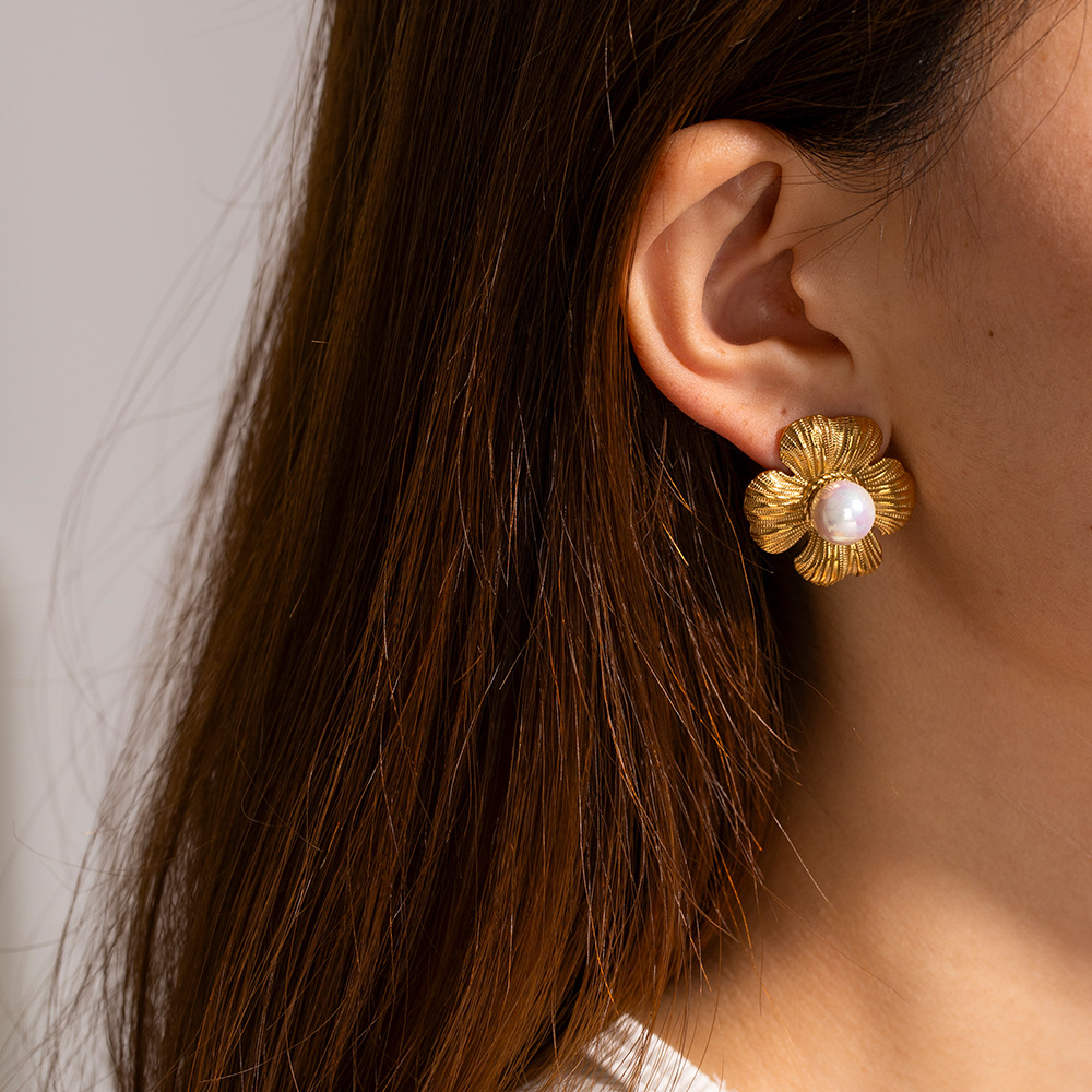 Gold petal shape earrings