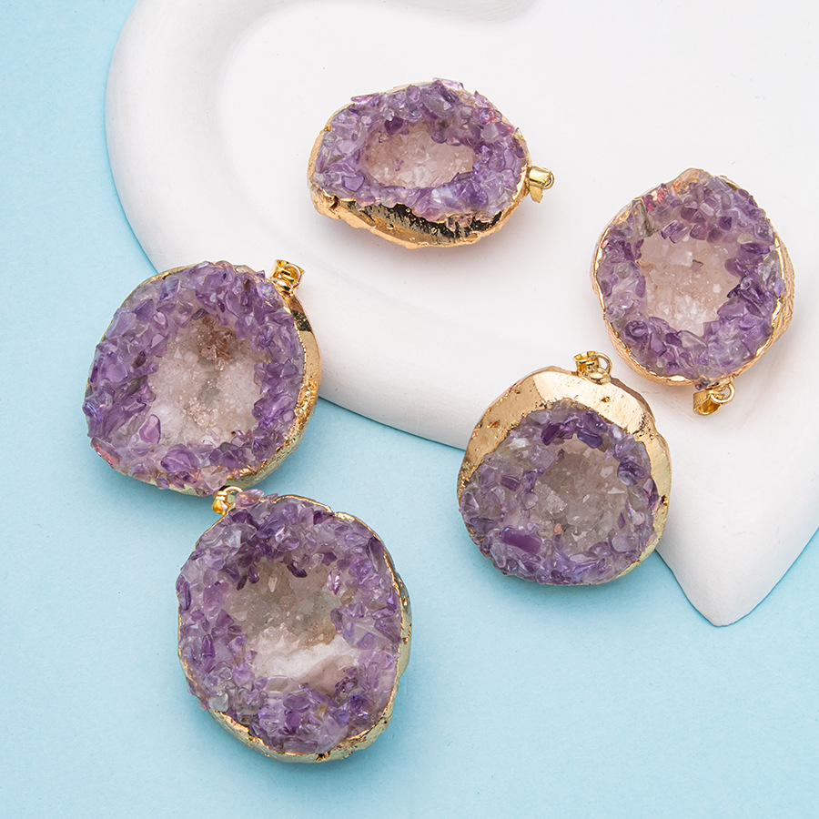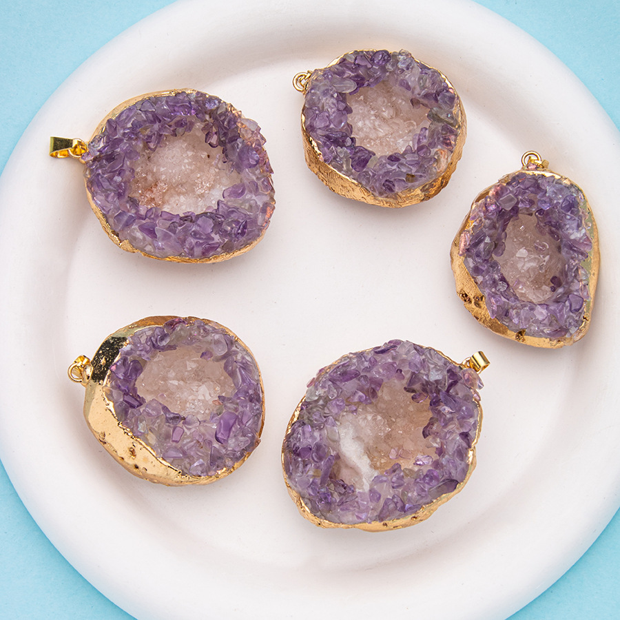Gold Plated Bezel Amethyst Cluster Pendant