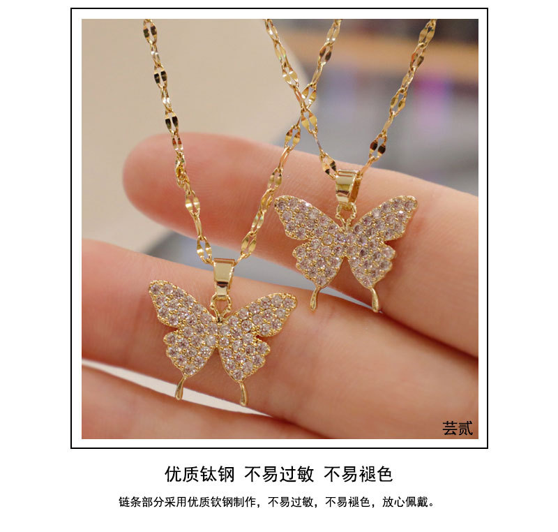 SKU:YY-0019-Titanium steel gold chain flash diamond butterfly necklace
