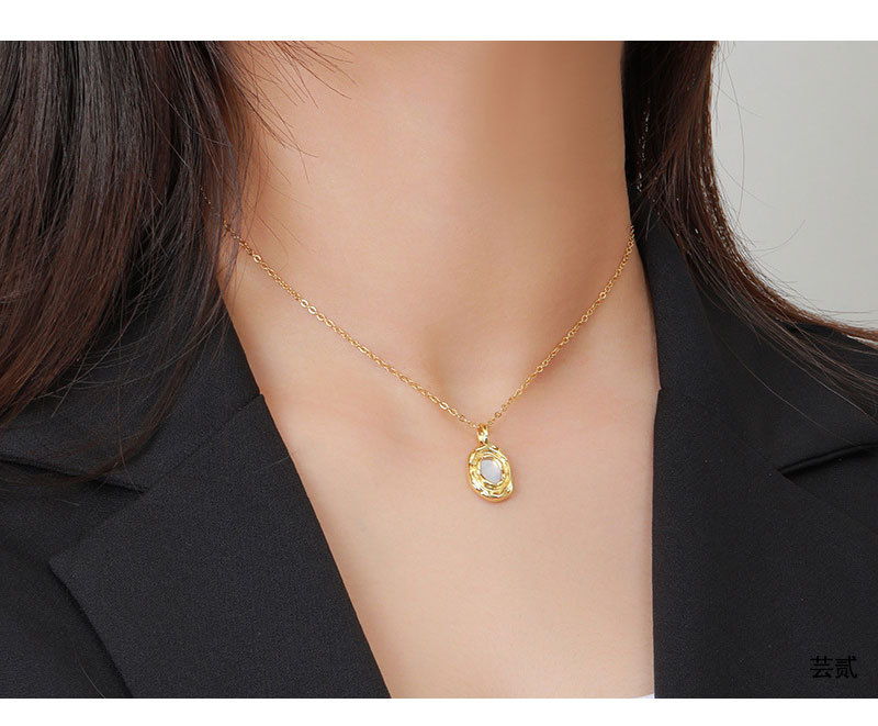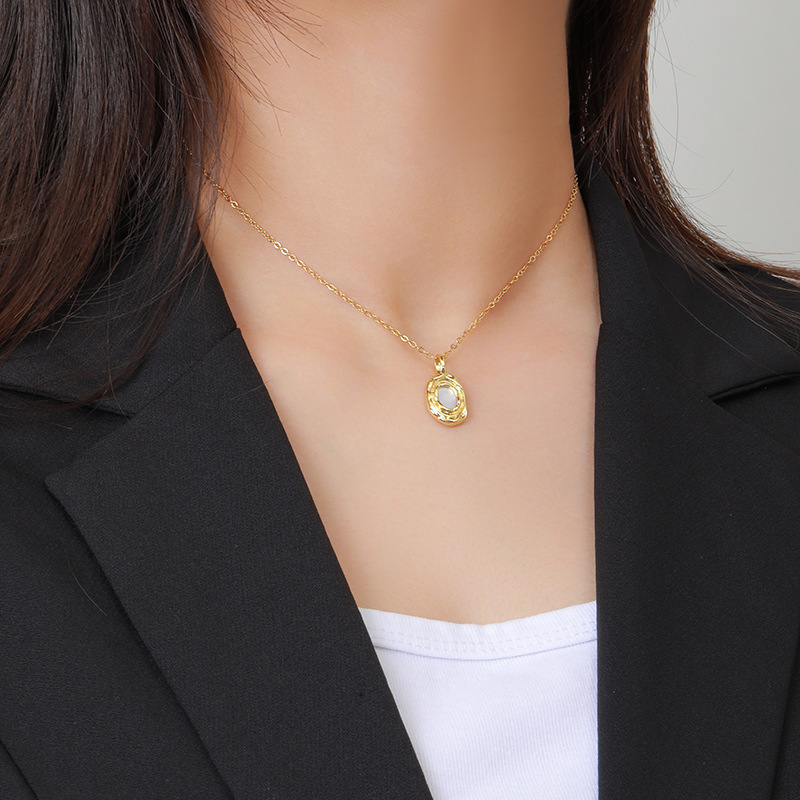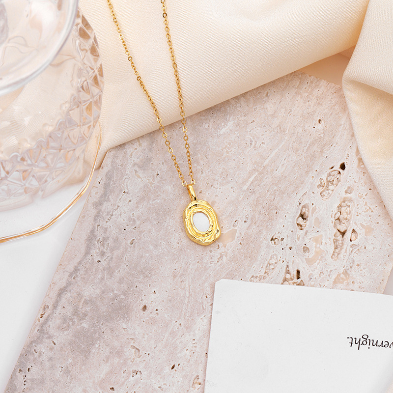 SKU:YY-0069-Opposite Oval White Shell Necklace - Gold
